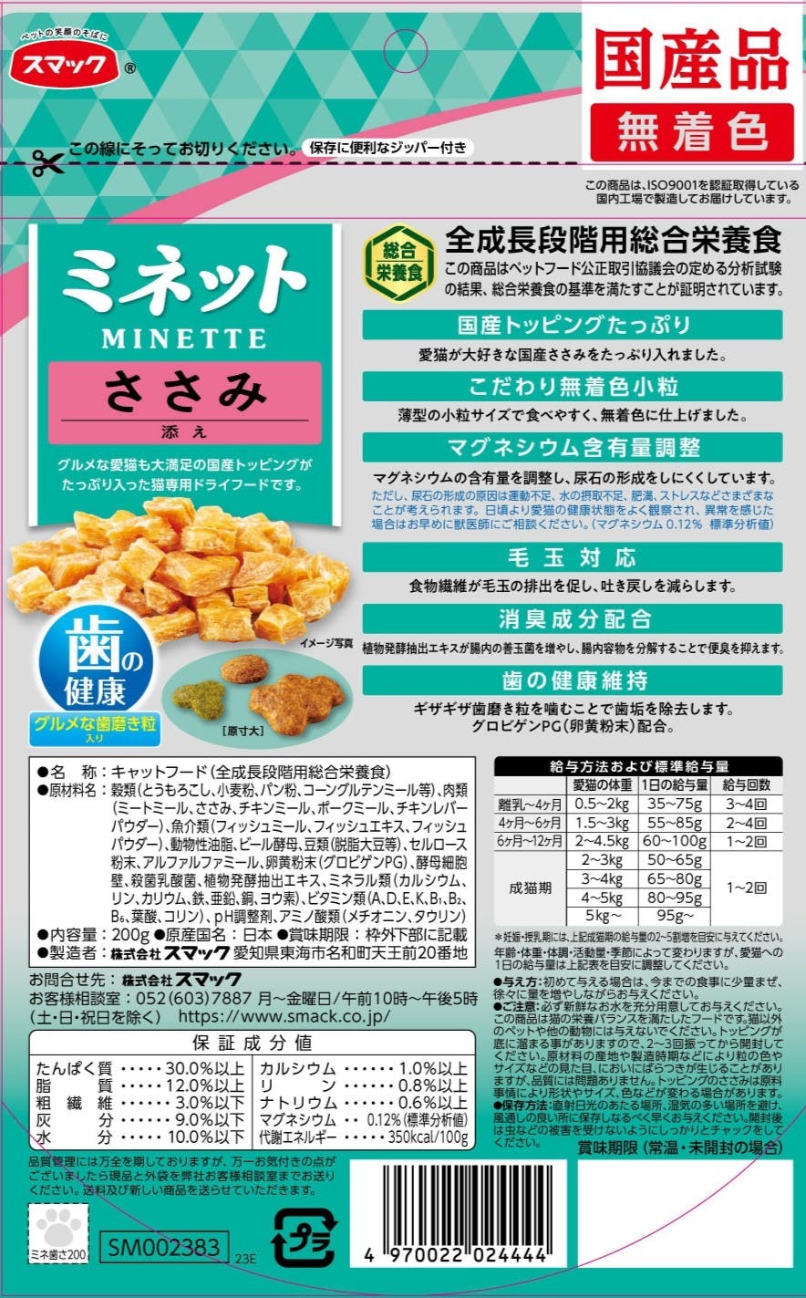 スマック ミネット 歯の健康ささみ200g 猫用 ドライフード 総合栄養食 1610684001【別送品】
