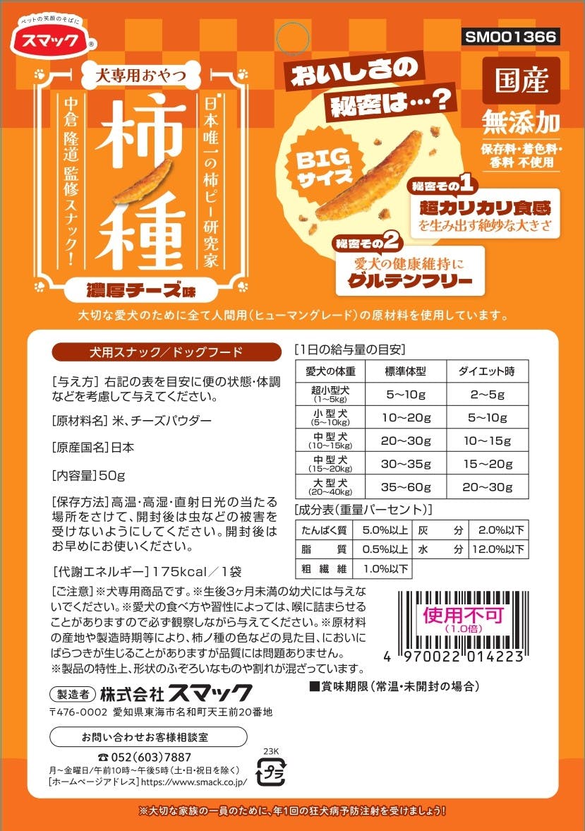 スマック 柿ノ種濃厚チーズ味50g 犬用 おやつ ごほうび 1610716001【別送品】