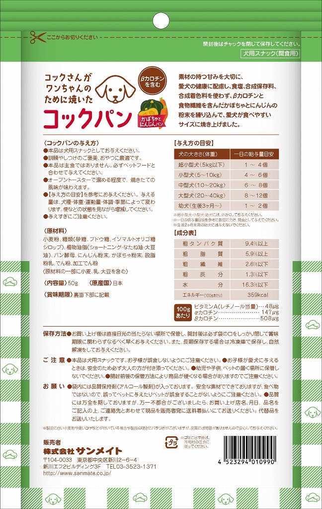 サンメイト コックパンかぼちゃにんじんパン50g 犬用 スナック ペット用 2120916001【別送品】