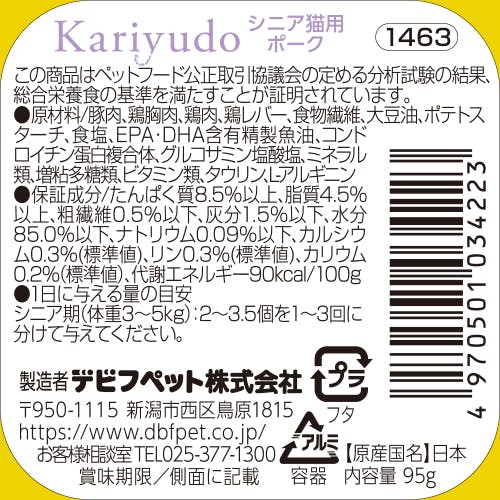 デビフペット カリユドシニア猫用ポーク95g 肉本来の味 高齢期の健康 なめて食べられるとろみタイプ 2400555001【別送品】