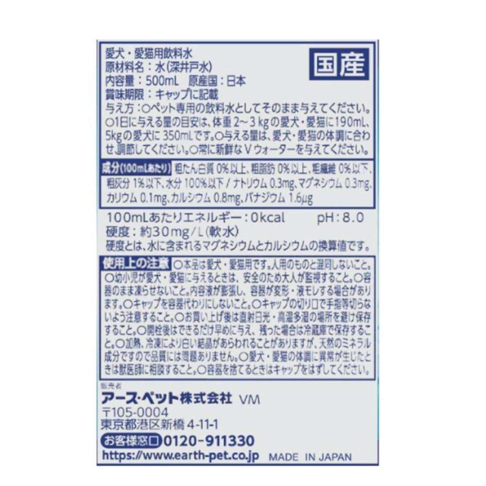 アース・ペット ペットの天然水Vウォーター500ml 水分補給 栄養補助 ペットのドリンク 3140074001【別送品】