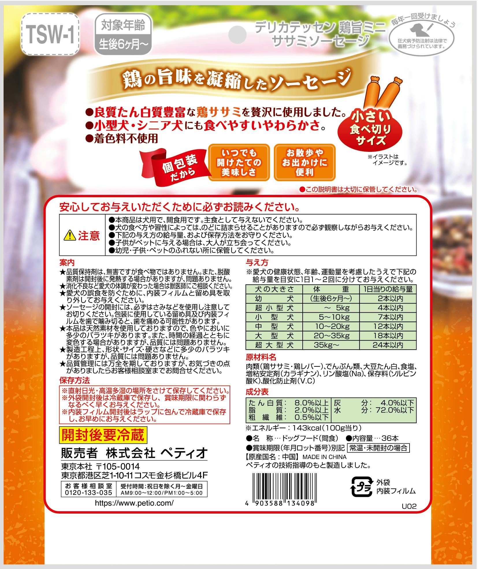 ペティオ デリカテッセン鶏旨ミニササミソーセージ36本 4903588134098 3417249001【別送品】