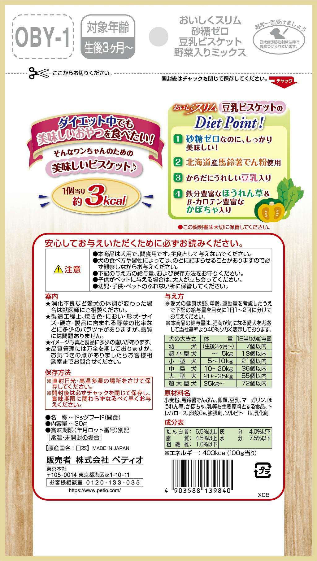 ペティオ おいしくスリム豆乳ビスケット野菜30g 犬 フード スナック 3418623001【別送品】