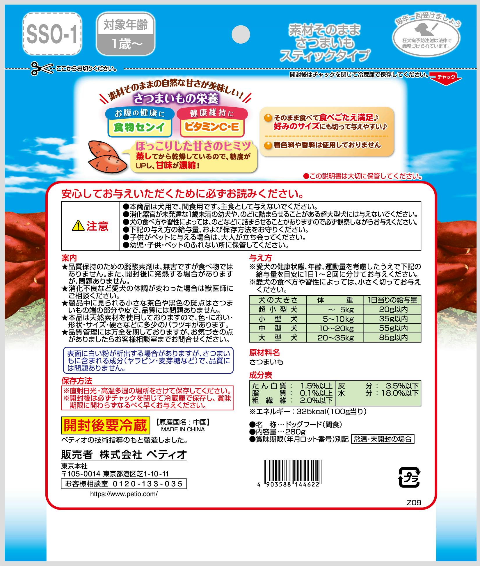 ペティオ 素材さつまいもスティックタイプ280g 犬 フード スナック 3419289001【別送品】