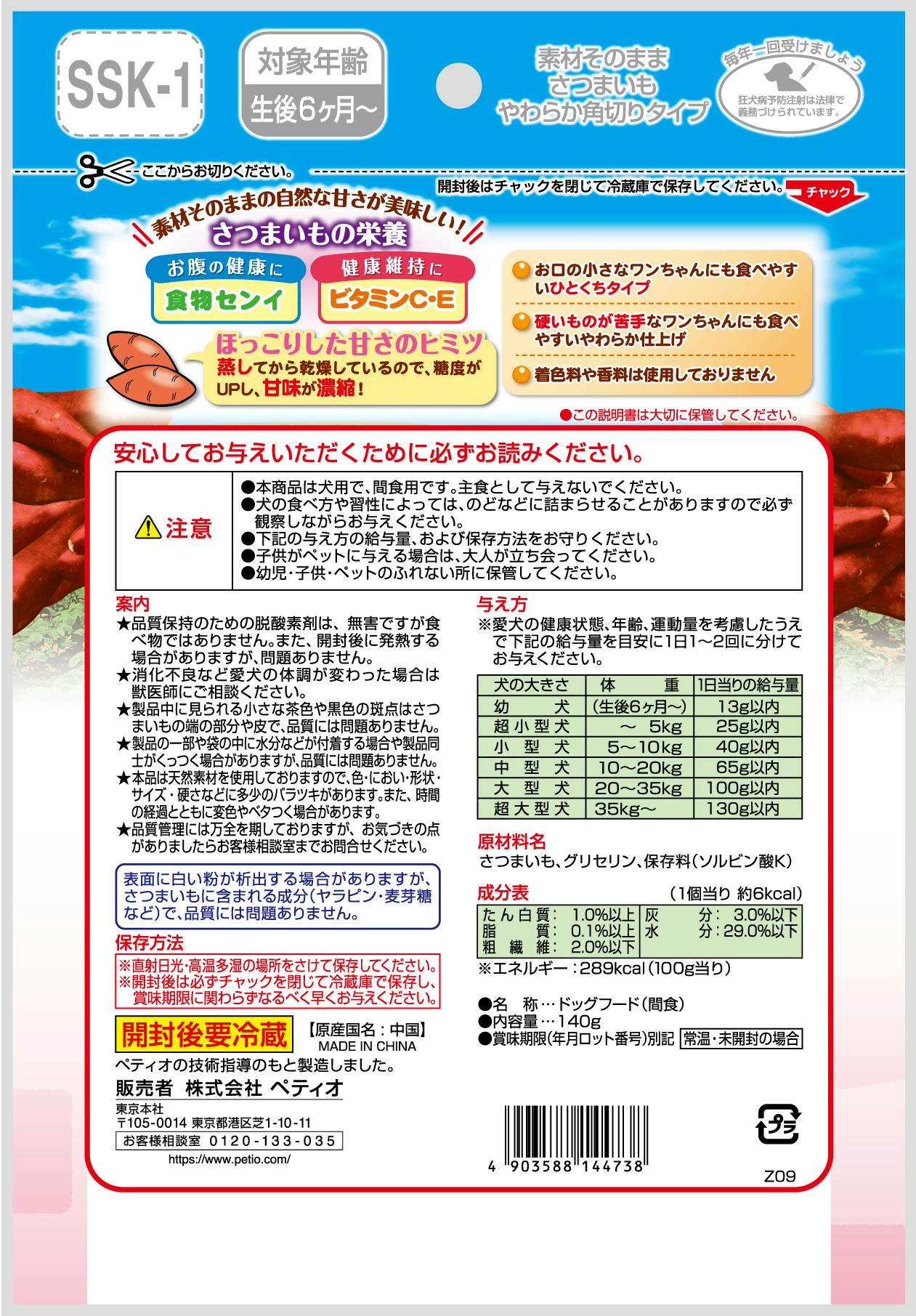 ペティオ 素材さつまいもやわらか角切り140g 犬 フード スナック 3419300001【別送品】