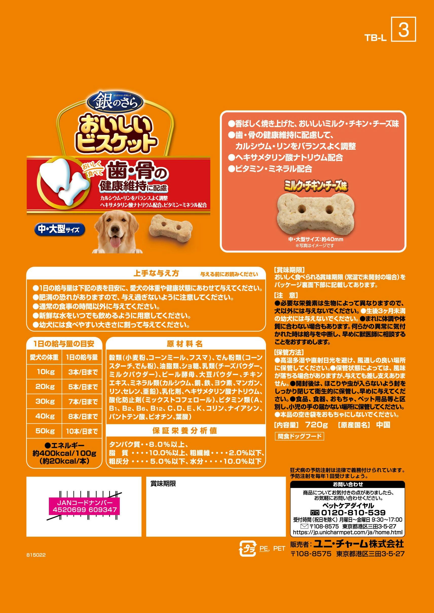 ユニ・チャーム 銀さらビスケット歯・骨中・大型720g 嗜好性 犬用 おやつ 3480767001【別送品】