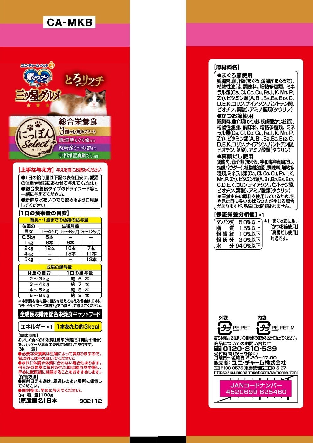 ユニ・チャーム 三ツ星おやつ総合とろリッチ3種魚味108g 嗜好性 猫用 おやつ 3482415001【別送品】