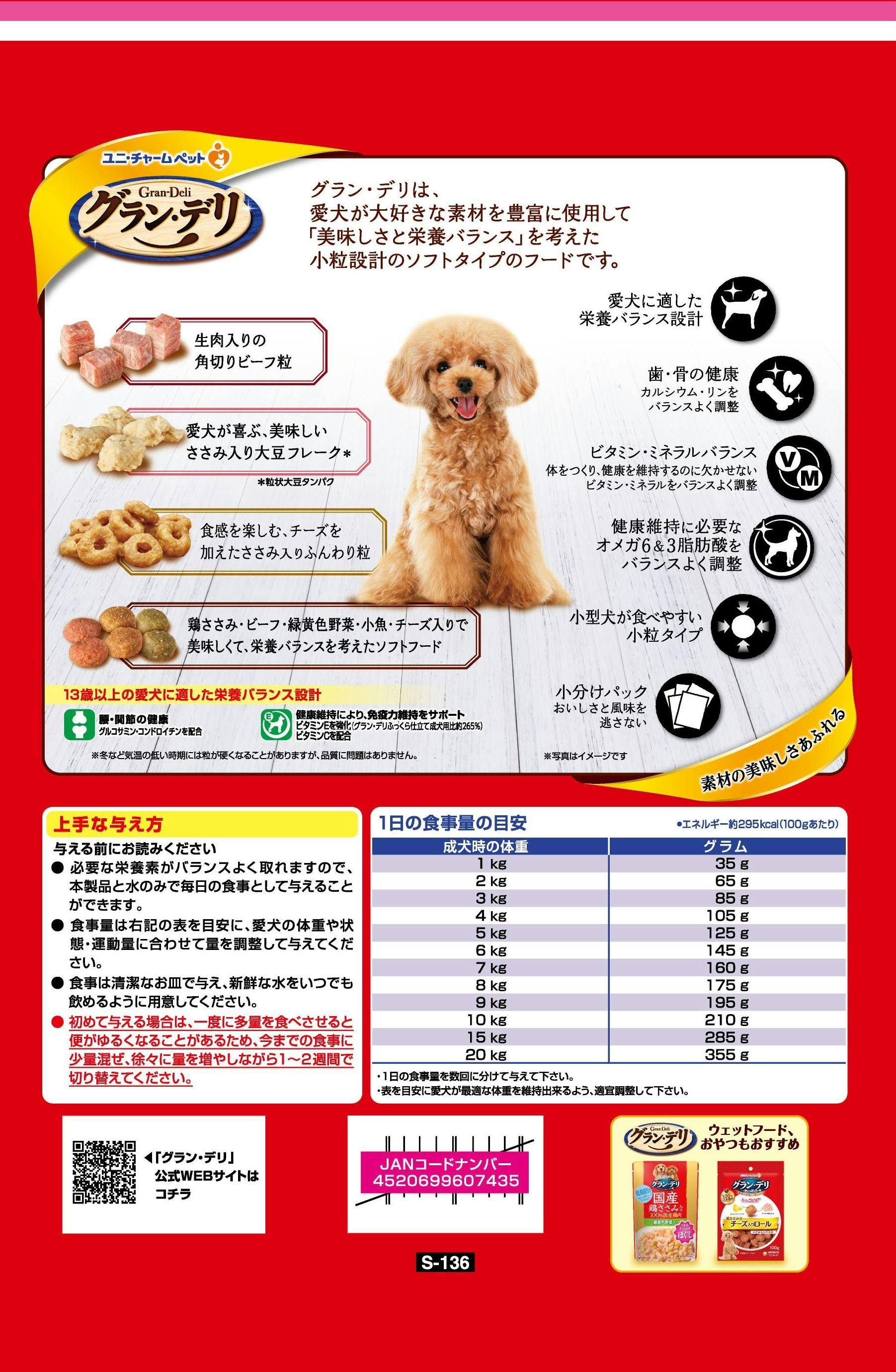 ・美味しいふっくら仕立てのグルメフード ・角切りビーフ粒・ささみ入りふんわり粒・ささみ入り大豆フレーク入り ・13歳以上の愛犬の腰・関節の健康維持のために、グルコサミン・コンドロイチンを配合 ・栄養素をバランス良く摂取できる総合栄養食 ・健康維持に必要なオメガ6&3脂肪酸をバランス良く調整