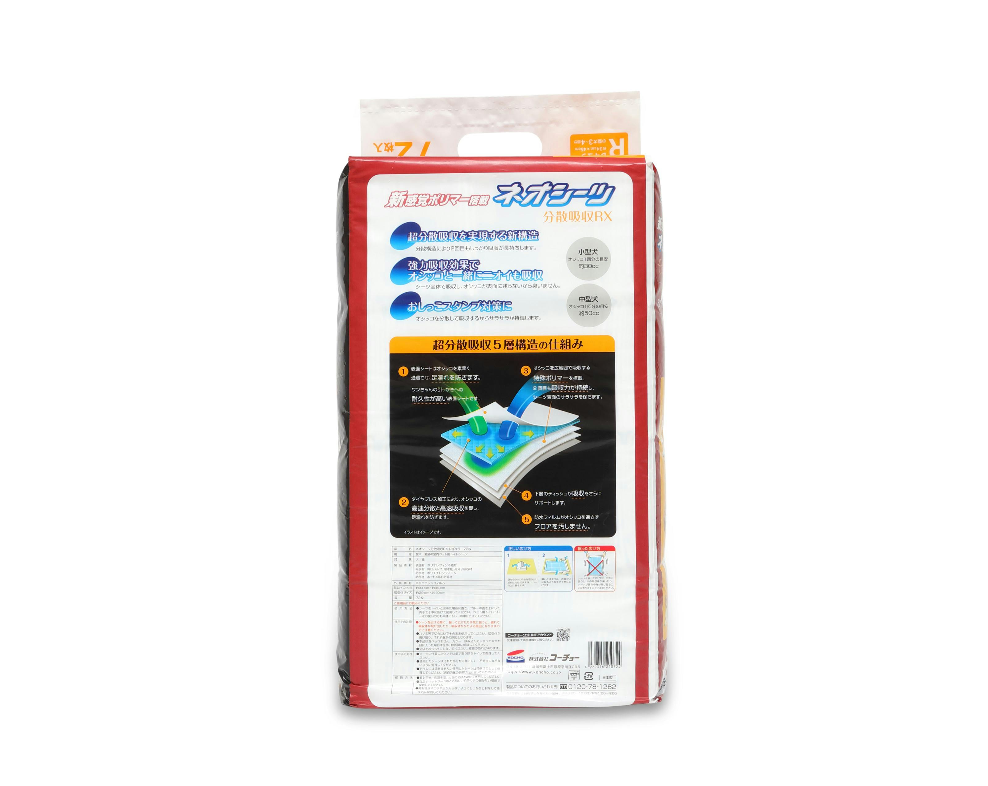 コーチョー ネオシーツRXレギュラー72枚 ペットシーツ 高速吸収 強力消臭 3630472001【別送品】
