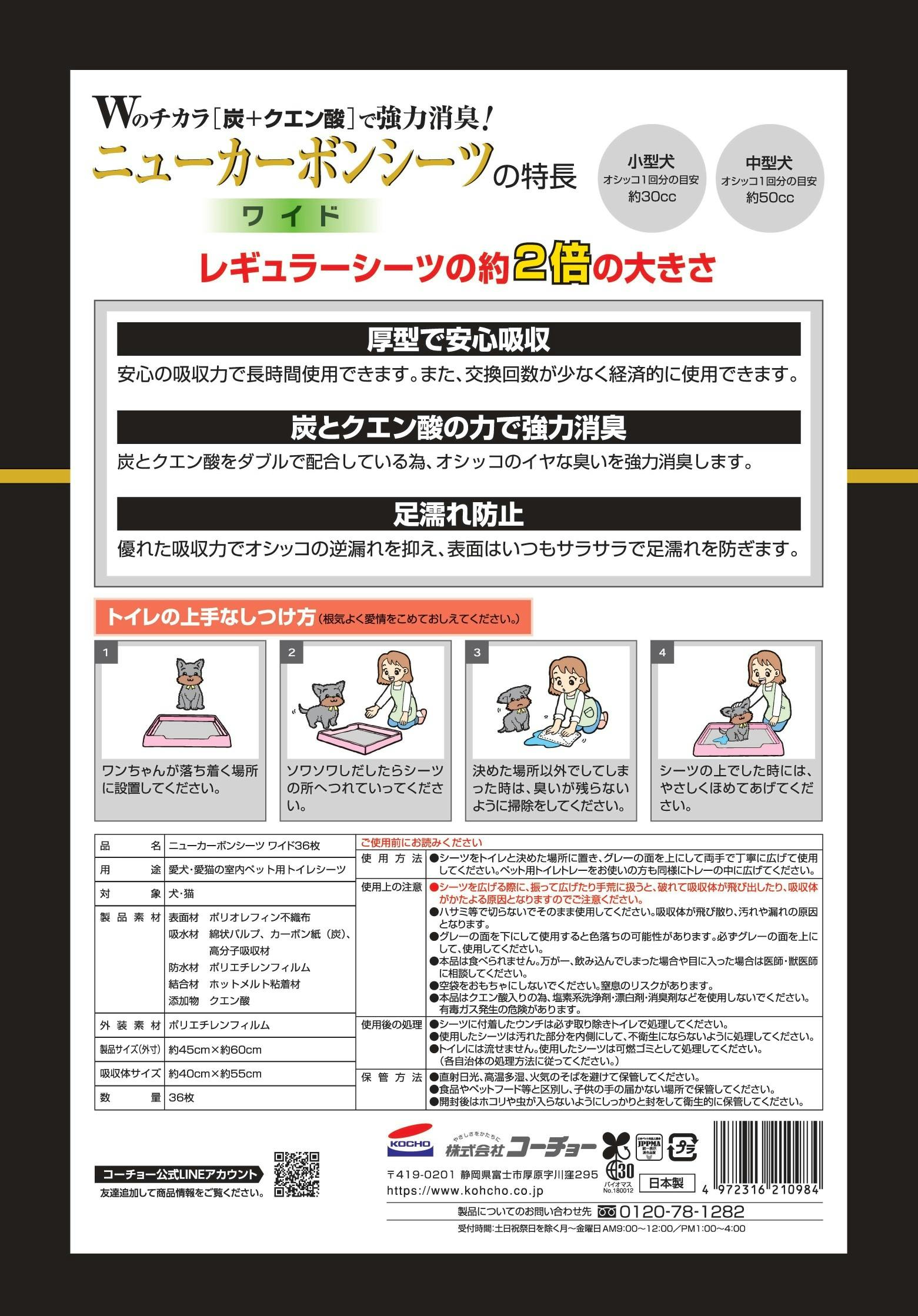 コーチョー ニューカーボンシーツワイド36枚 ペットシーツ 高速吸収 強力消臭 3630490001【別送品】
