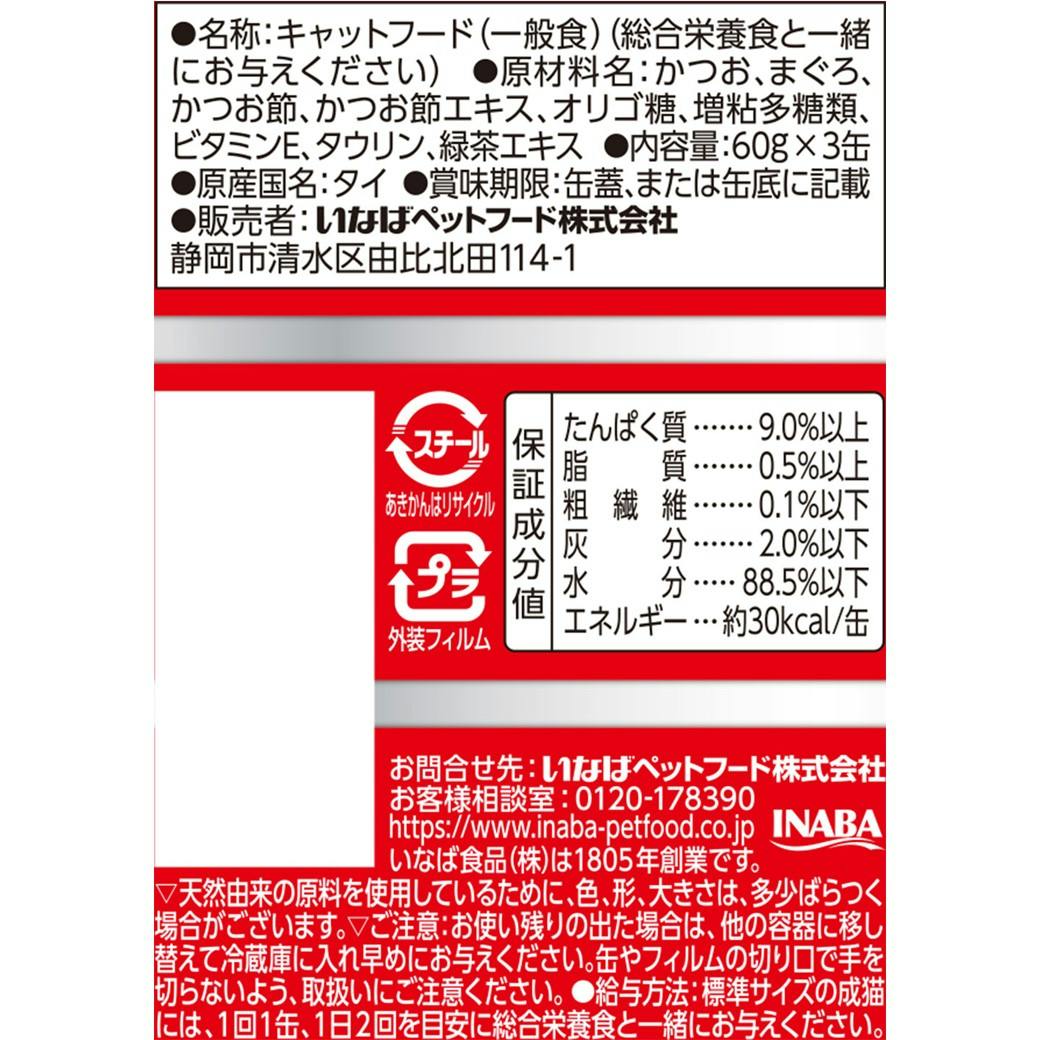 いなば わがまま猫 まぐろミニ 11歳かつお節入 60g×3P 高嗜好性 ウェットフード 猫用 3752052001【別送品】