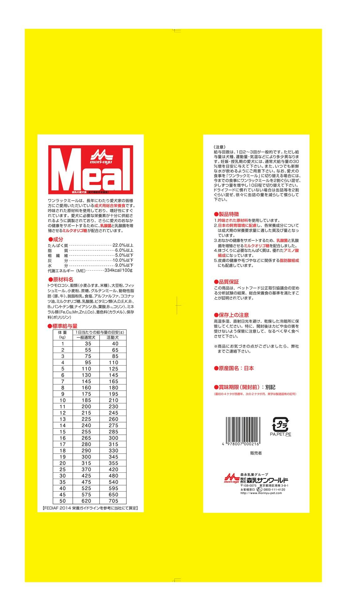 森乳 ワンラック ミール 10kg 大袋 ドライフード 総合栄養食【取り寄せ】 780111001【別送品】