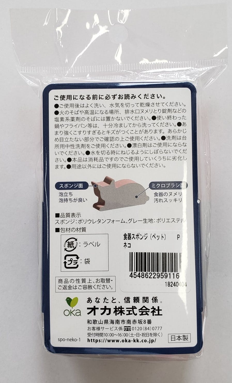 オカ 食器スポンジペット ネコ 泡立ち キッチングッズ ペット食器 1500061001【別送品】