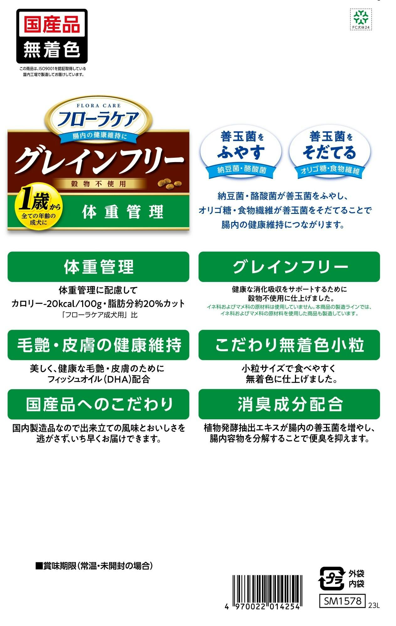 フローラケアDOG 体重管理2.4kg 無着色 グレインフリー 総合栄養食 1610706001【別送品】