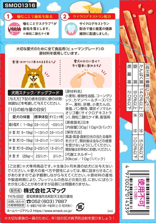 生後3カ月未満の幼犬には与えないで下さい。愛犬の食べ方や習性によっては、喉に詰まらせることがありますので必ず観察しながら与えてください。