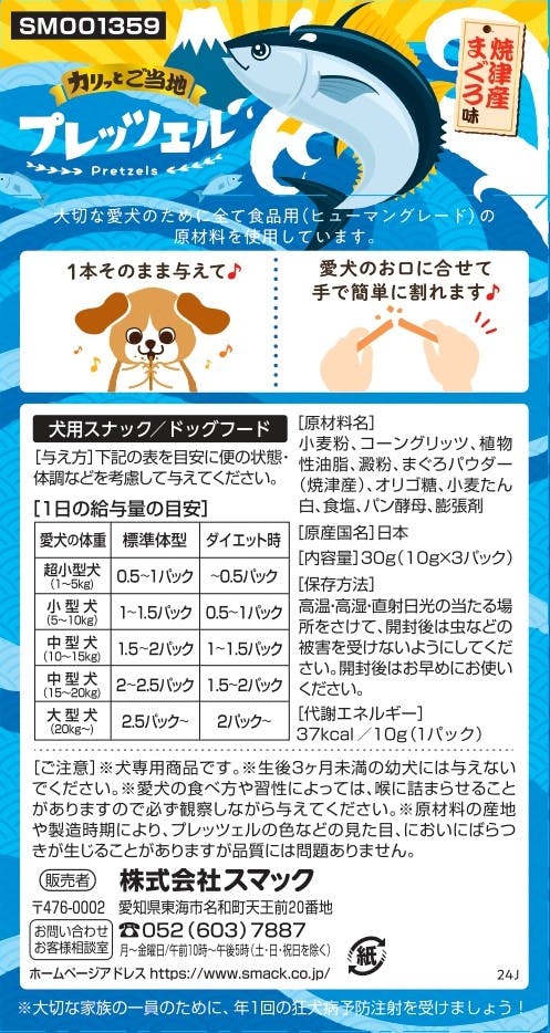 ●犬専用商品です。●生後3ヶ月未満の幼犬には与えないでください。●愛犬の食べ方や習性によっては、喉に詰まらせることがありますので必ず観察しながら与えてください。●原材料の産地や製造時期により、プレッツェルの色などの見た目、においにばらつきが生じることがありますが品質には問題ありません。