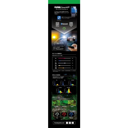 ●植物の健康と成長、コンディションを整える光合成をサポート。●植物に最適なライトバランスにする高い色温度。●スライドで伸ばせるアーム式。60~85cmまで対応●専用アプリFluval Smartを使い、スマートフォン等の端末機器で、色スペクトルの調整、プリセットモードの設定、タイマー管理ができます。
