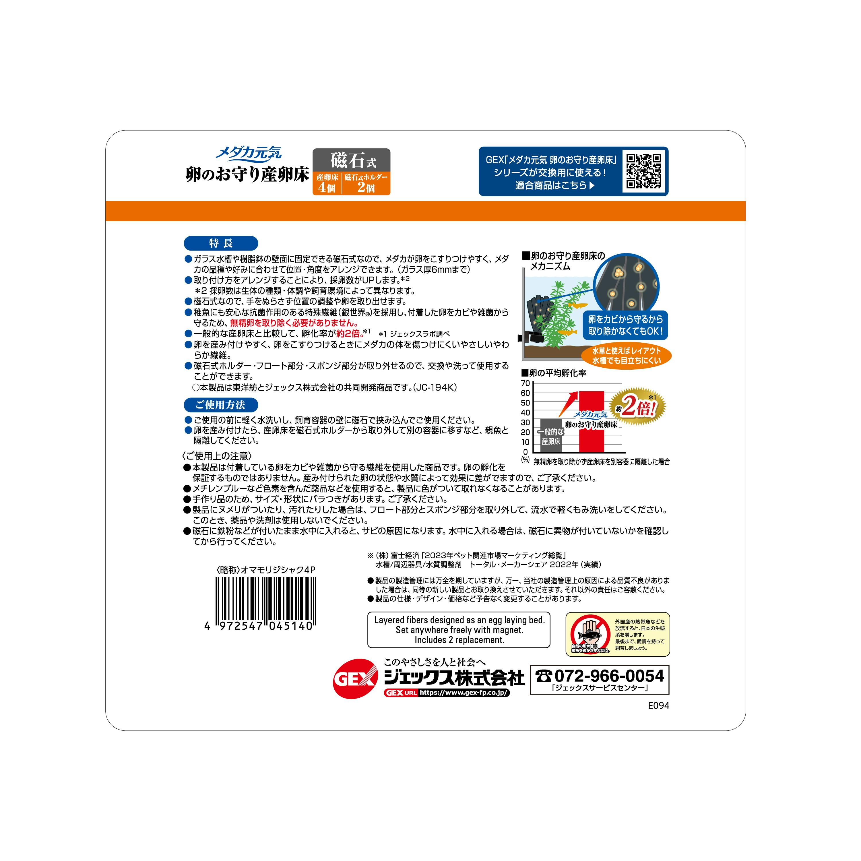 ジェックス メダカ元気 卵のお守り産卵床磁石式4個 水槽用品 簡単固定 抗菌繊維 1744422001【別送品】