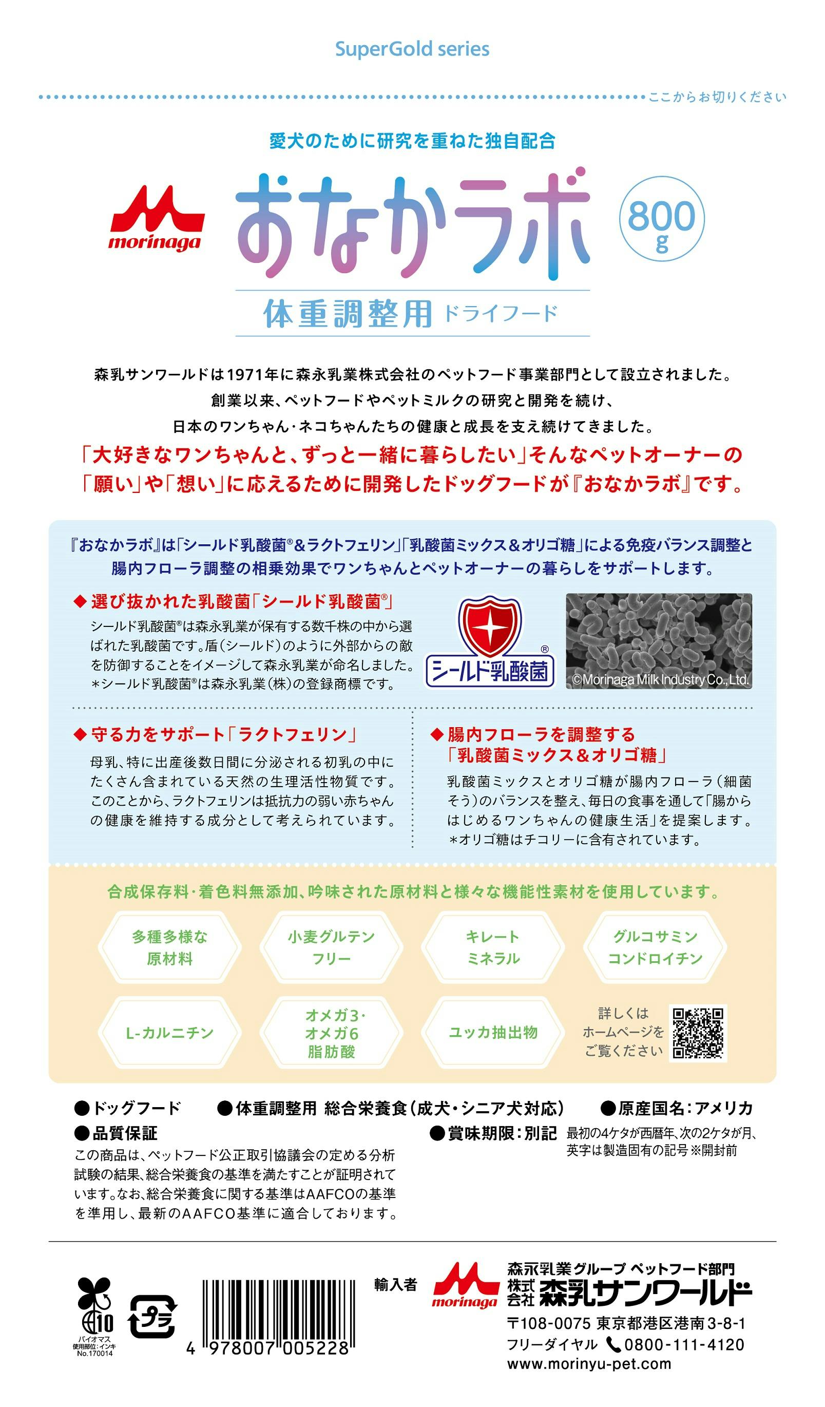 スーパーゴールド おなかラボ体重調整用800g シールド乳酸菌+ラクトフェリン 獣医師監修 総合栄養食 1780177001【別送品】