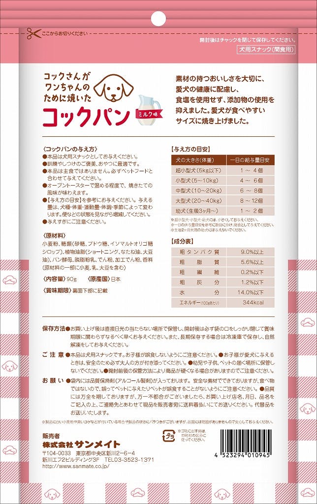 コックパン ミルク味90g 犬用おやつ 国産 2120911001【別送品】