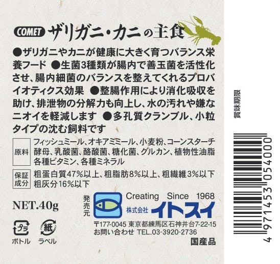 コメット ザリガニの主食40g 甲殻類フード ニオイ・汚れ軽減 沈下性 2390079001【別送品】