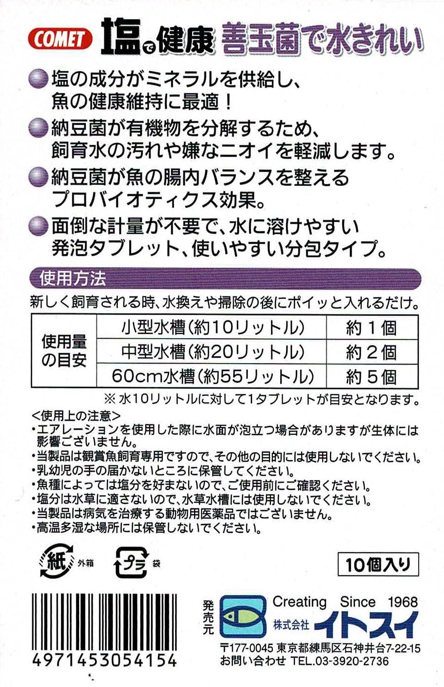 コメット 塩で健康 納豆菌10個 水槽用品 水質改善 2390096001【別送品】
