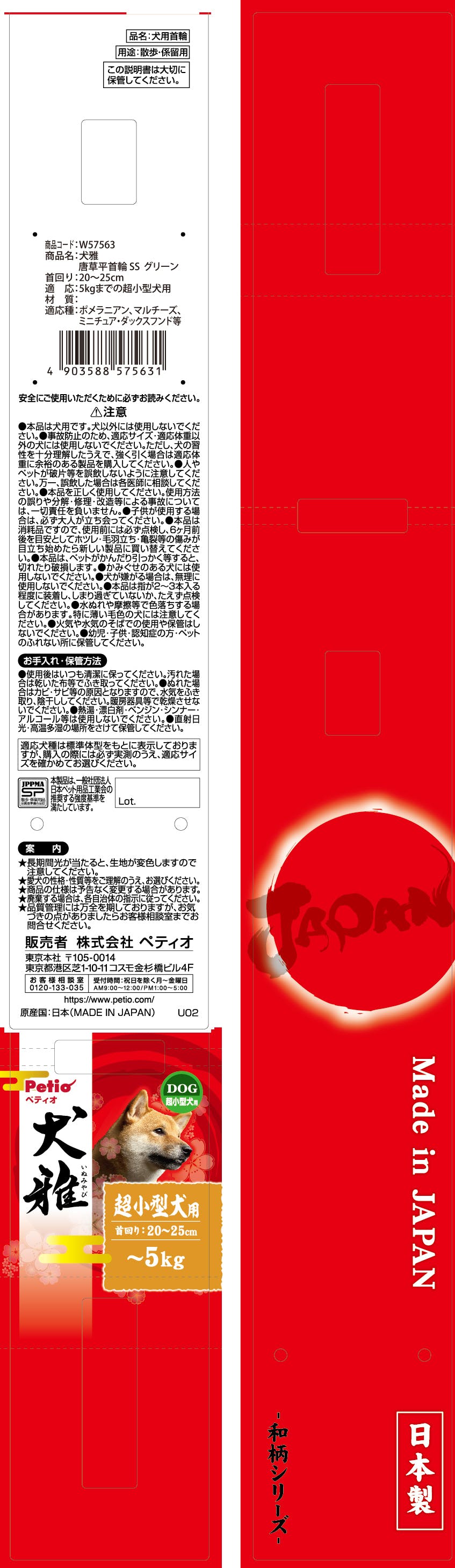 ペティオ 犬雅唐草平首輪グリーンSS 犬用 適応体重5kg以下 首回り20~25cm 3417343001【別送品】