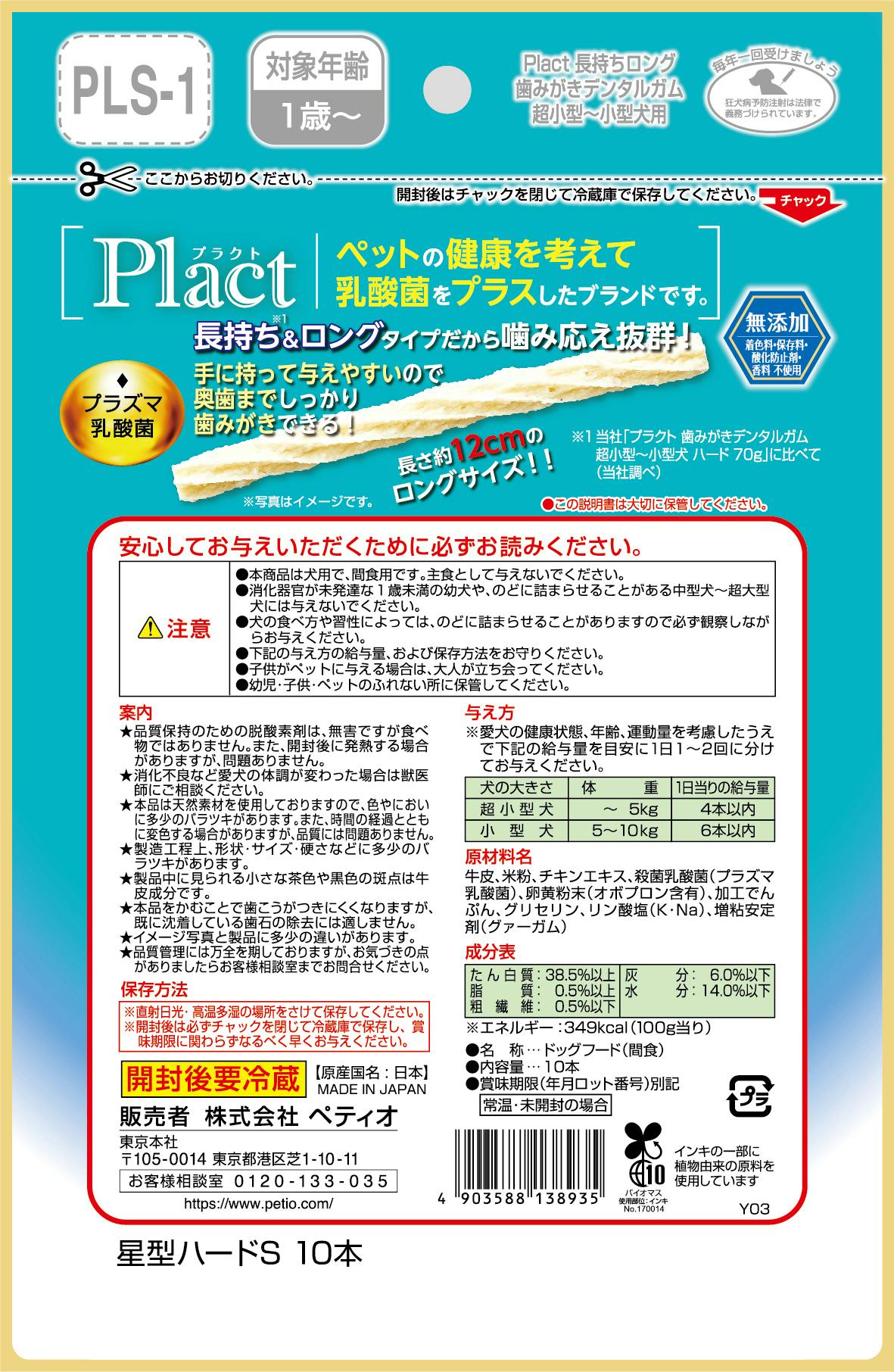 プラクト 長持ちデンタル超小型小型10本 プラズマ乳酸菌 おやつ 無添加 3418379001【別送品】