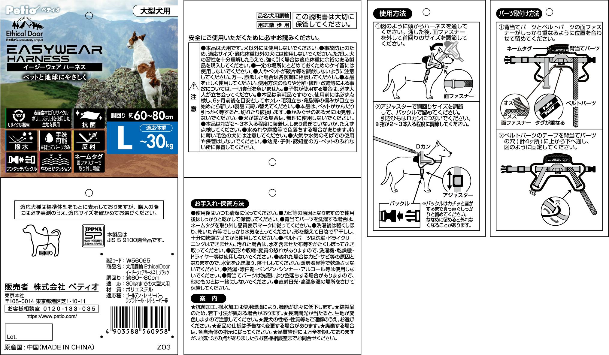 ペティオ EDイージーウェアハーネスブラックL 胴輪 中型犬・大型犬 犬用品 3419187001【別送品】
