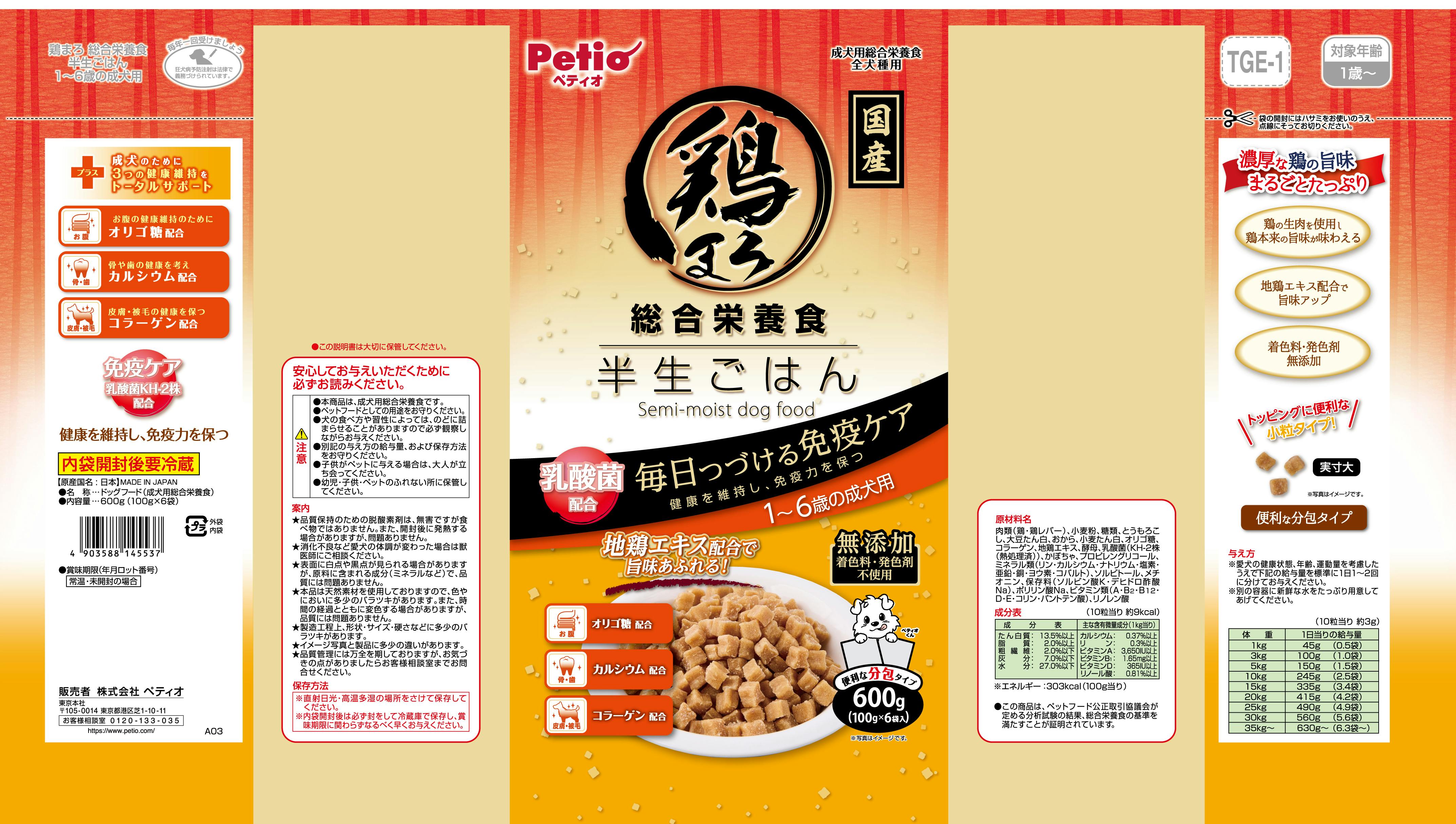 ペティオ 鶏まろ半生ごはん成犬用600g 免疫ケア 着色料・発色剤無添加 オリゴ糖・カルシウム・コラーゲン配合 3419357001【別送品】
