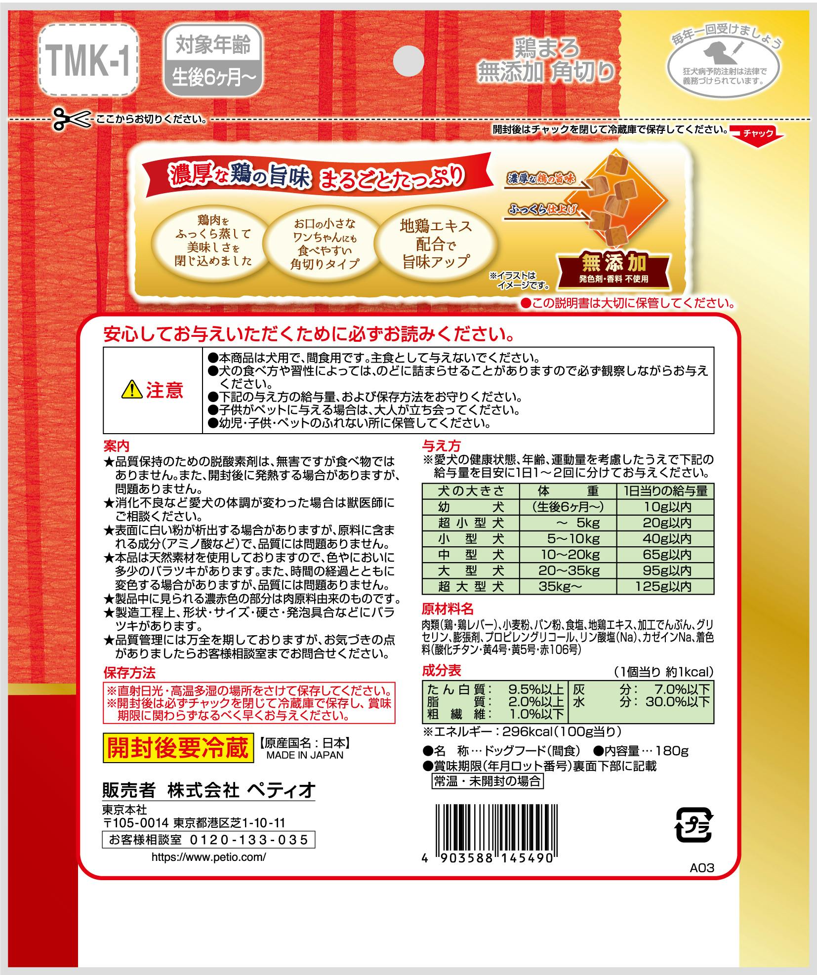 • ペティオ 鶏まろ無添加角切り180g 犬用おやつ 無添加 国産 3419360001【別送品】