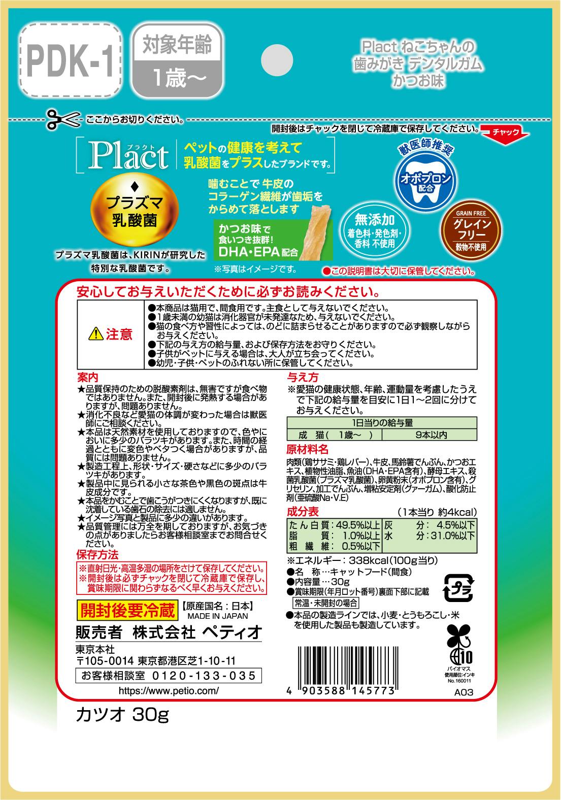 • ペティオ プラクトねこデンタルかつお味30g 猫用おやつ 免疫ケア グレインフリー 3419388001【別送品】
