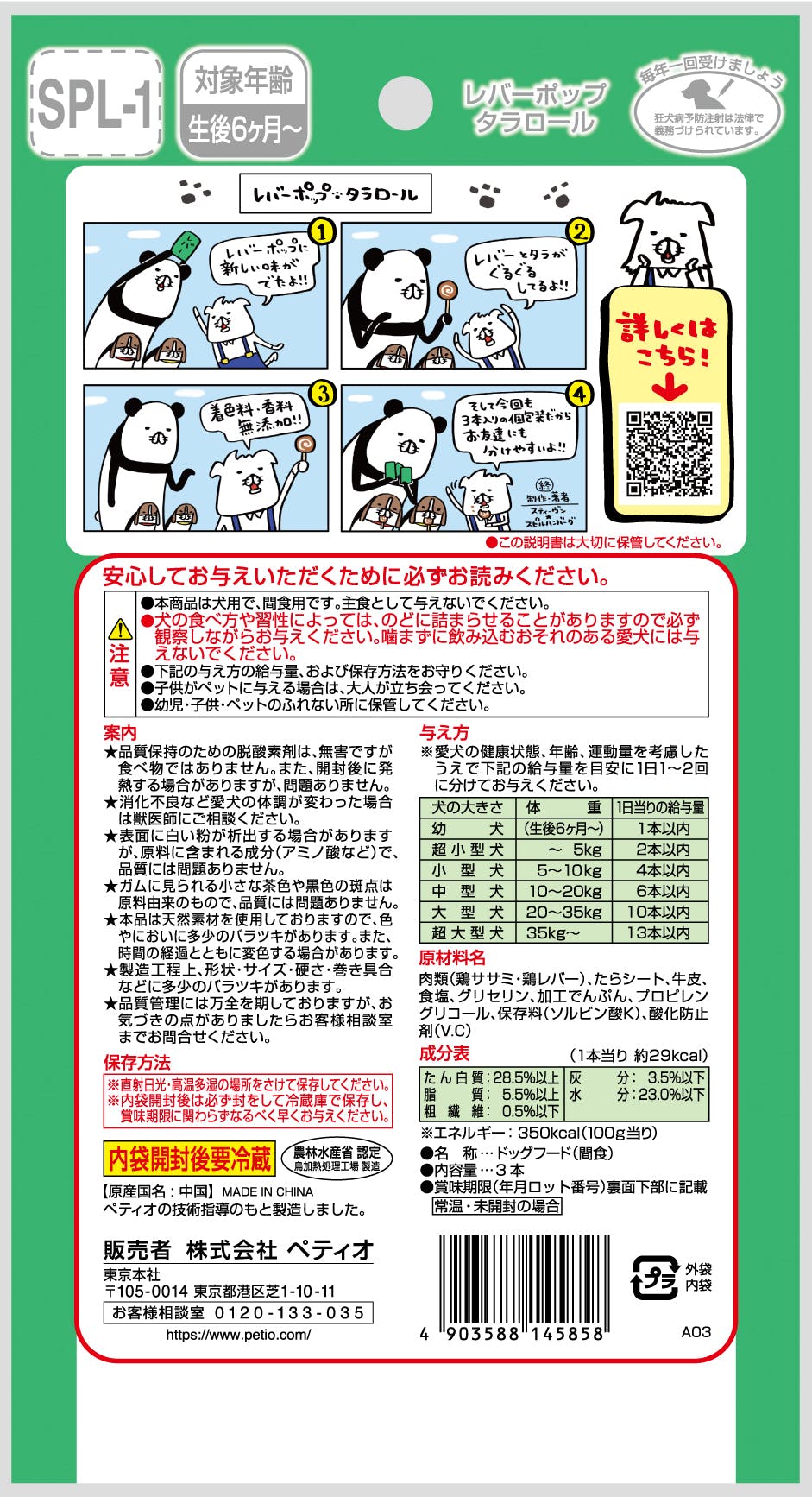ペティオ レバーポップタラロール3本入 個包装 着色料・香料不使用 犬用おやつ 3419396001【別送品】