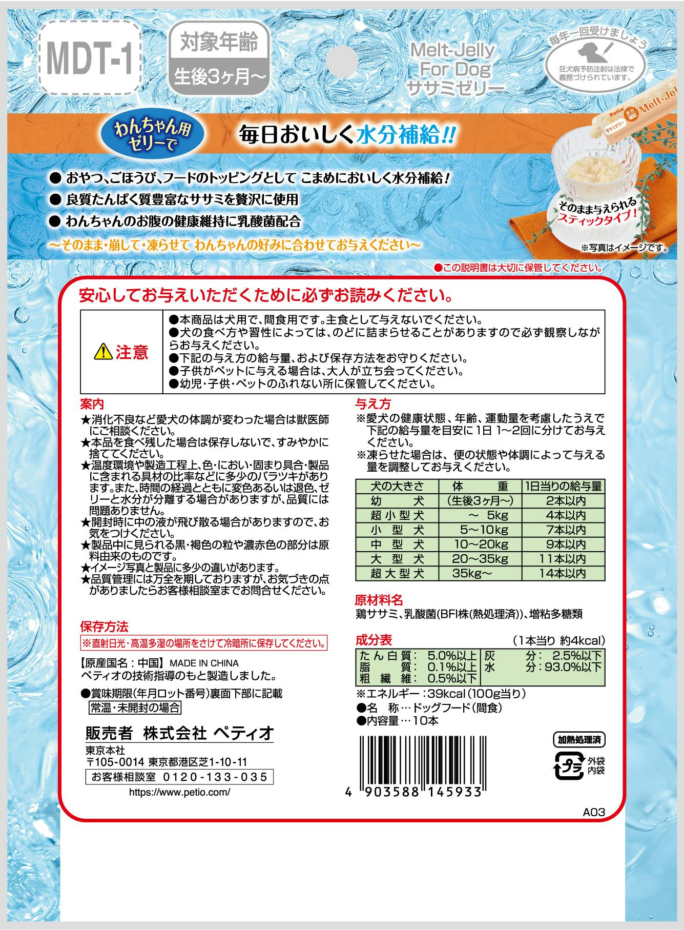ペティオ メルトジュレDogササミ10本 乳酸菌 水分補給 無添加 3419404001【別送品】