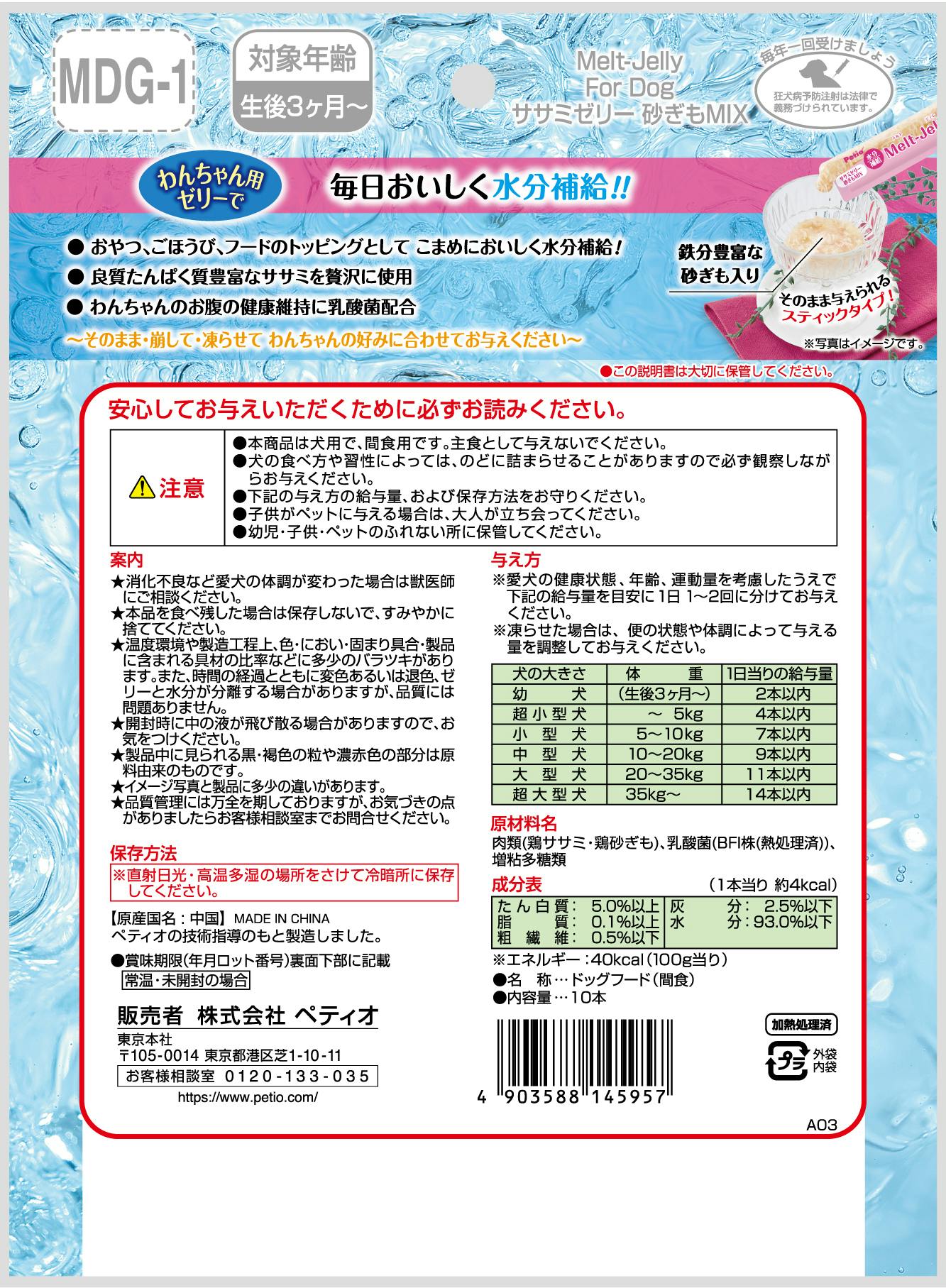 ペティオ メルトジュレDogササミ砂ぎも10本 乳酸菌 水分補給 無添加 3419406001【別送品】