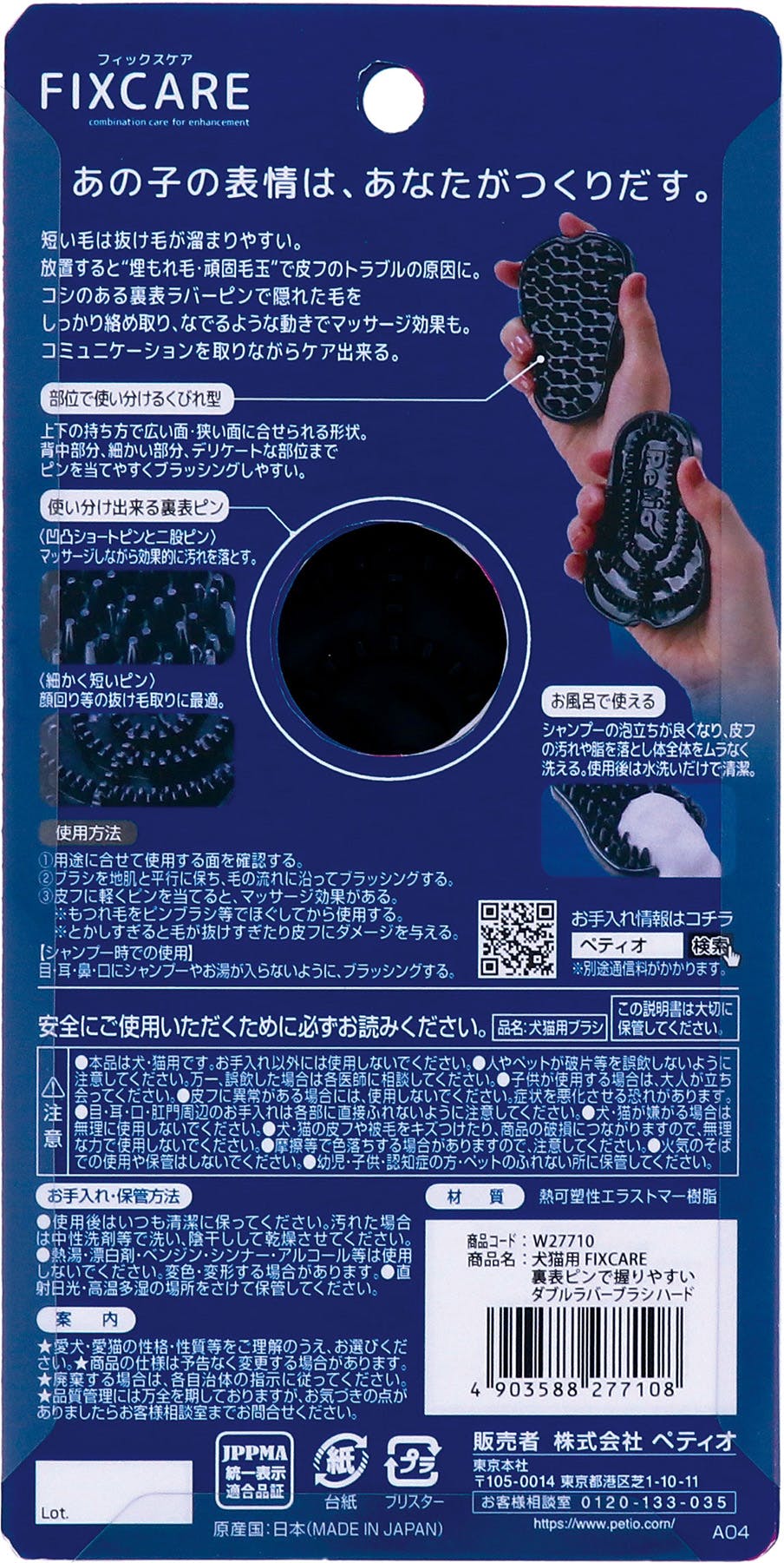 ペティオ FIXCAREダブルラバーブラシハード お手入れ マッサージ 犬猫兼用 3419529001【別送品】