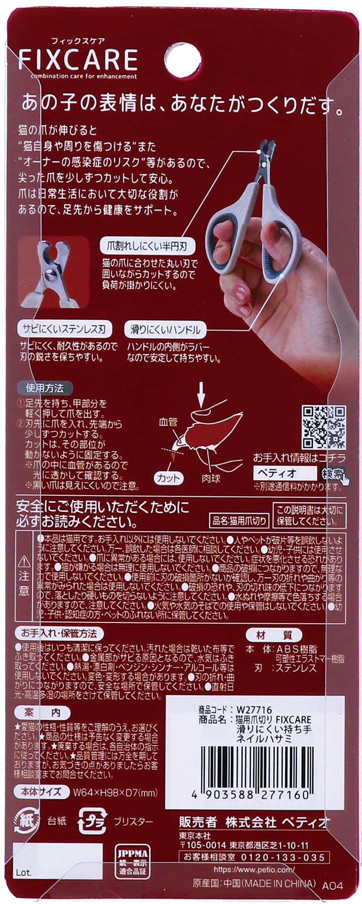 ペティオ FIXCAREネイルハサミ お手入れ 半円刃 猫用 3419535001【別送品】