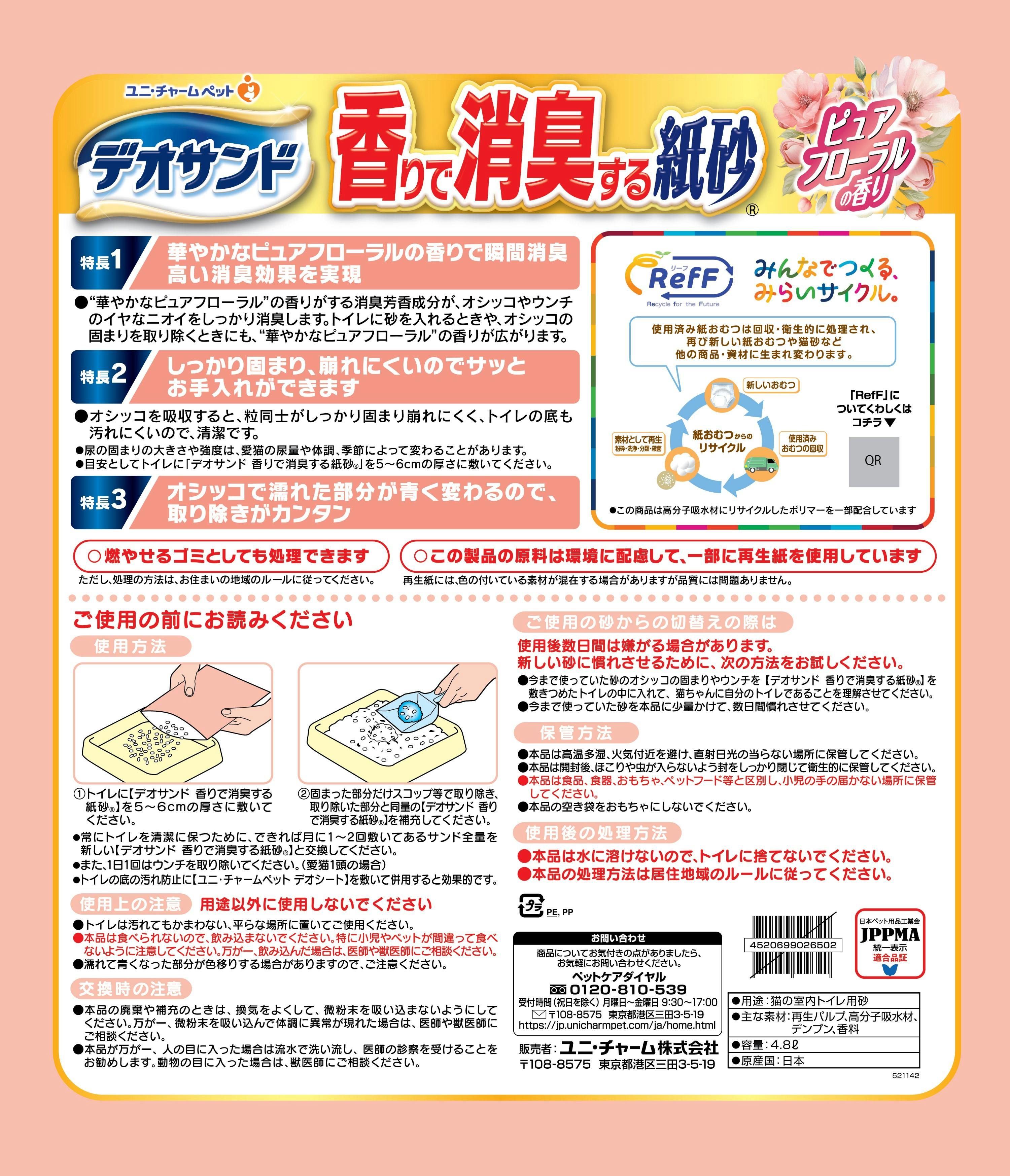 デオサンド 紙砂RefFピュアフローラル4.8L 香りで消臭 燃やせるゴミ リサイクル 3482876001【別送品】