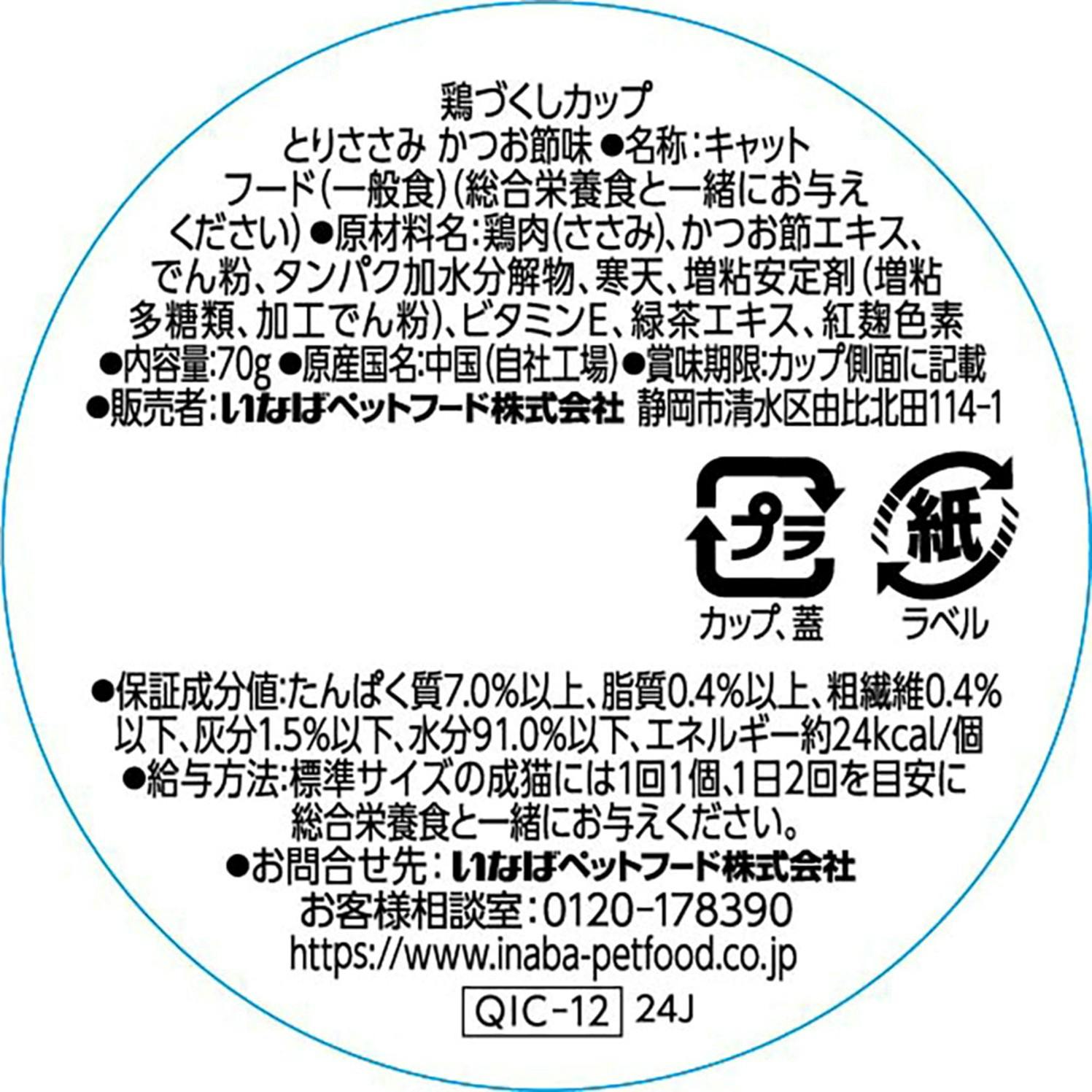 原材料:鶏肉(ささみ)、かつお節エキス、でん粉、タンパク加水分解物、寒天、増粘安定剤(増粘多糖類、加工でん粉)、ビタミンE、緑茶エキス、紅麹色素 原産国:中華人民共和国