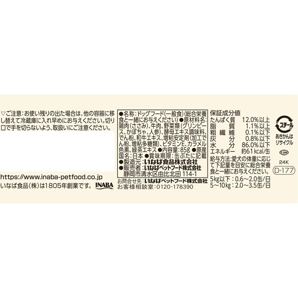 いなば ビーフ&とりささみ 野菜85g ドッグフード ゼリータイプ 抹茶消臭成分配合 3754583001【別送品】