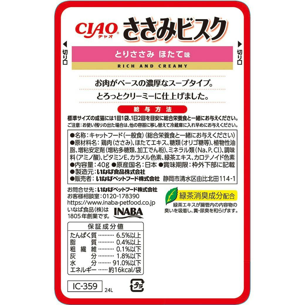 CIAO ささみビスク ささみ帆立40g キャットフード ウェットフード 国産 3754609001【別送品】