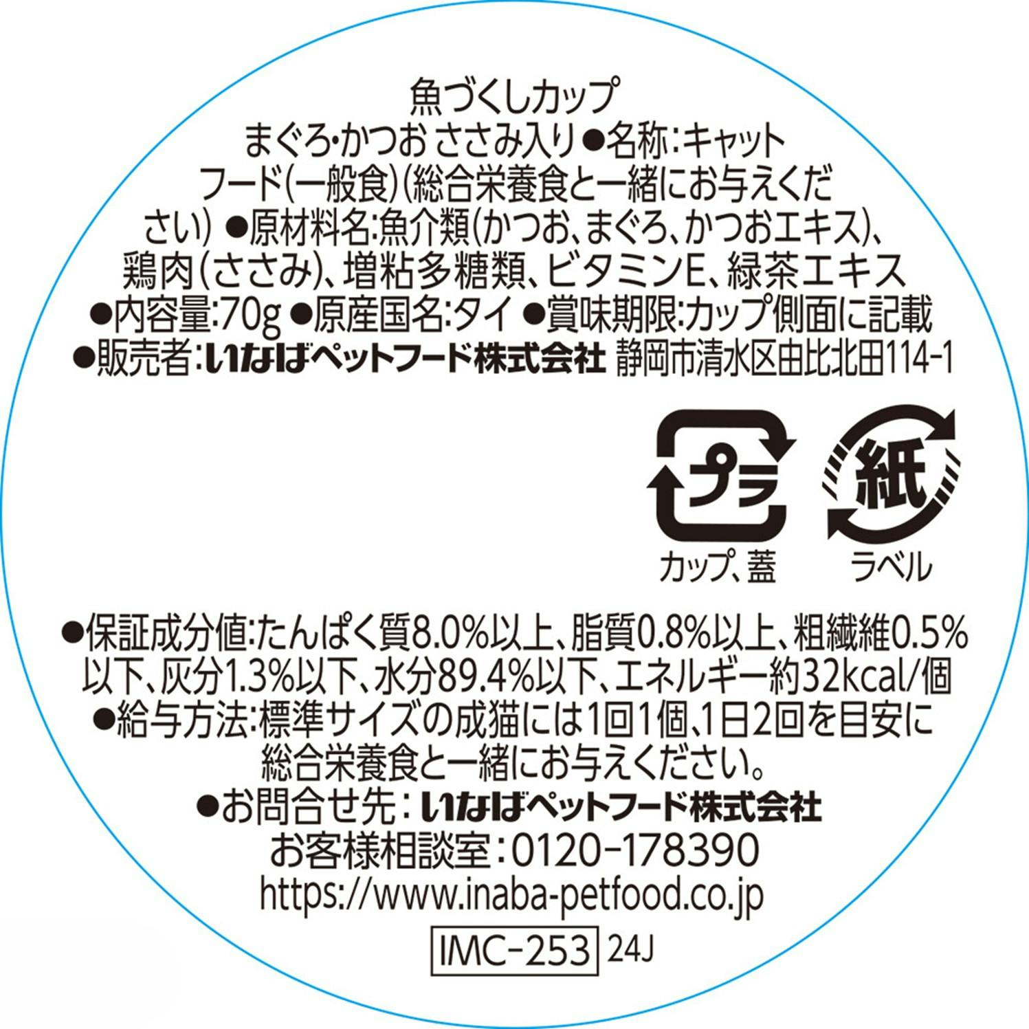 原材料:魚介類(かつお、まぐろ、かつおエキス)、鶏肉(ささみ)、増粘多糖類、ビタミンE、緑茶エキス 原産国:タイ