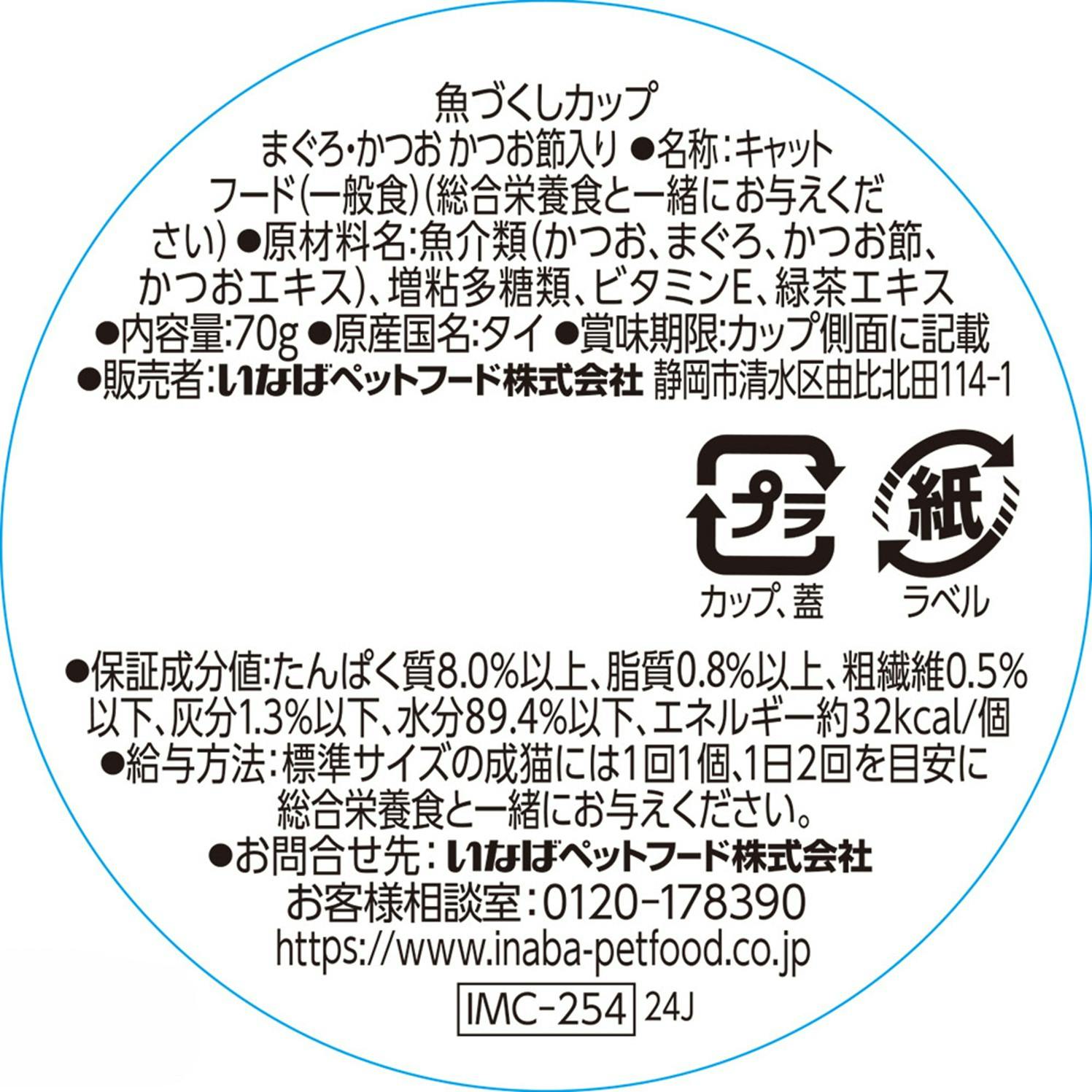 原材料:魚介類(かつお、まぐろ、かつお節、かつおエキス)、増粘多糖類、ビタミンE、緑茶エキス 原産国:タイ