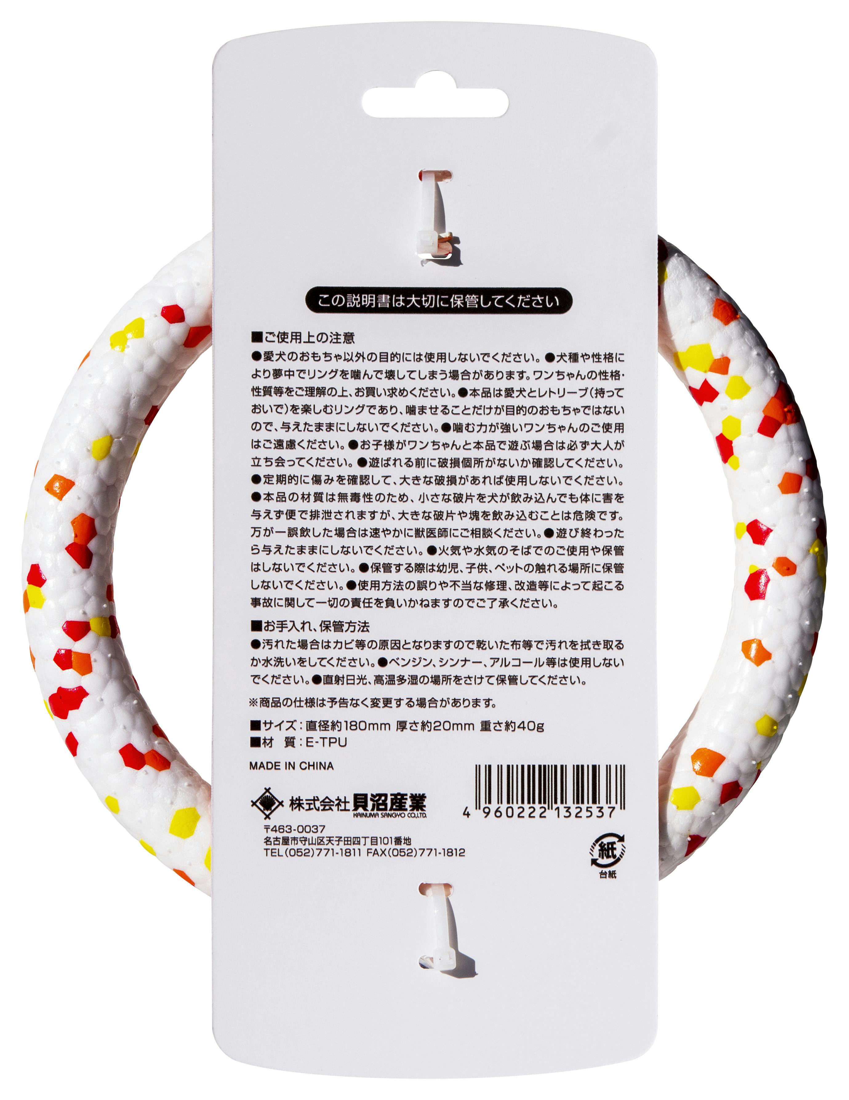 遊ばれるまえに破損個所がないか確認してください。本品の材質は無毒性のため小さな破片を犬が飲み込んでも体に害を与えず便で排泄されますが大きな破片や塊を飲み込むことは危険です。万が一誤飲した場合は獣医師にご相談ください。タグ紐はハサミで切らずにボールから引き抜いてください。