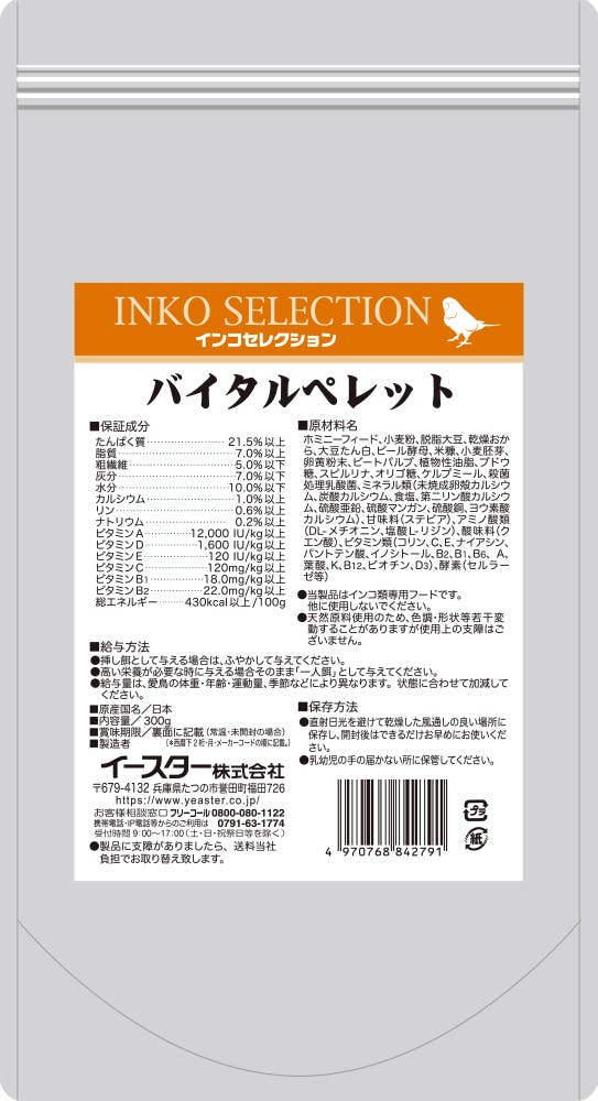 インコセレクション バイタルペレット300g 小鳥 フード 高栄養食 2630557001【別送品】
