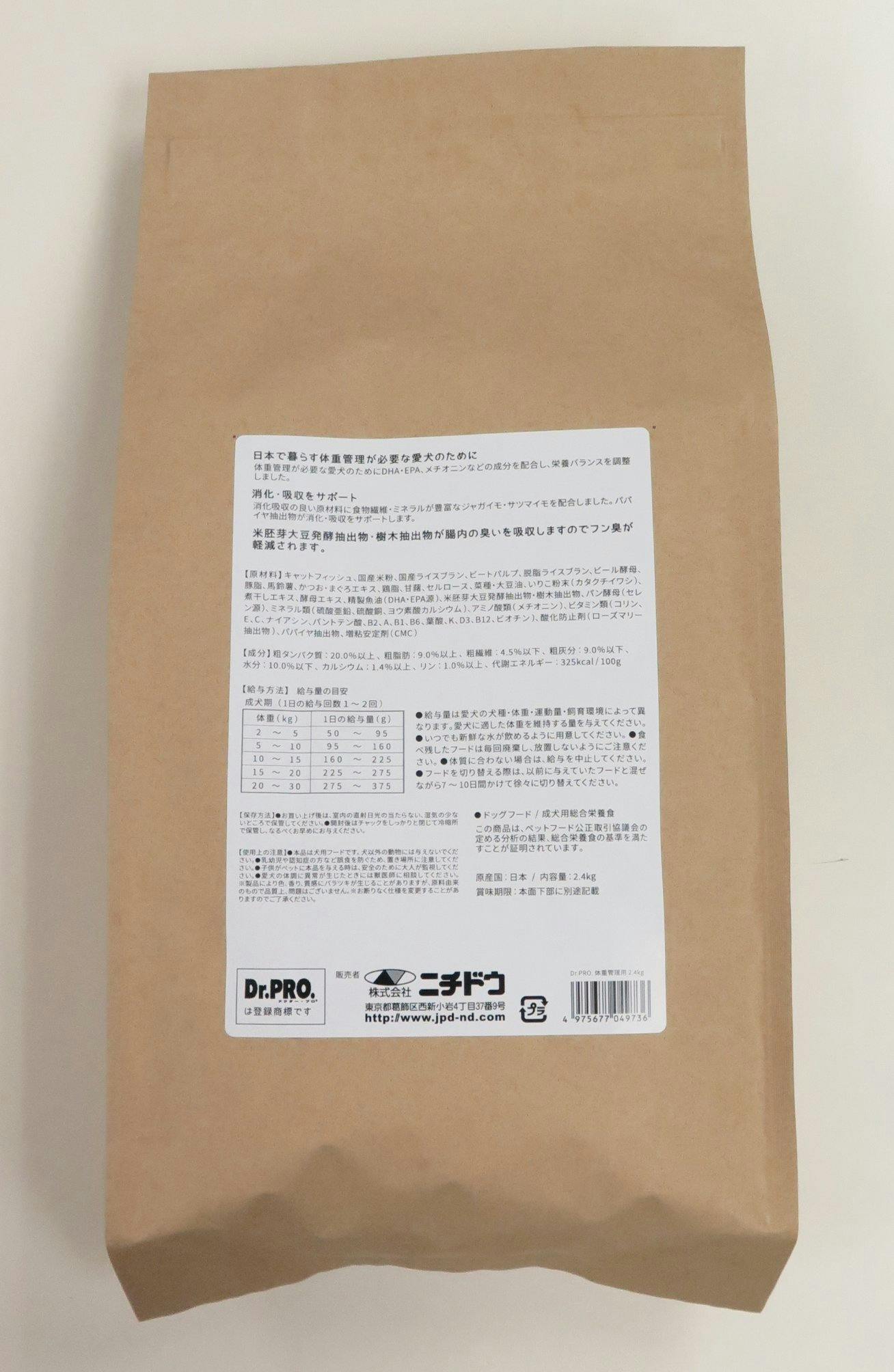 • Dr.PRO.体重管理用2.4kg 犬ドライ ダイエット 健康を保つ 体重管理用 2951937001【別送品】