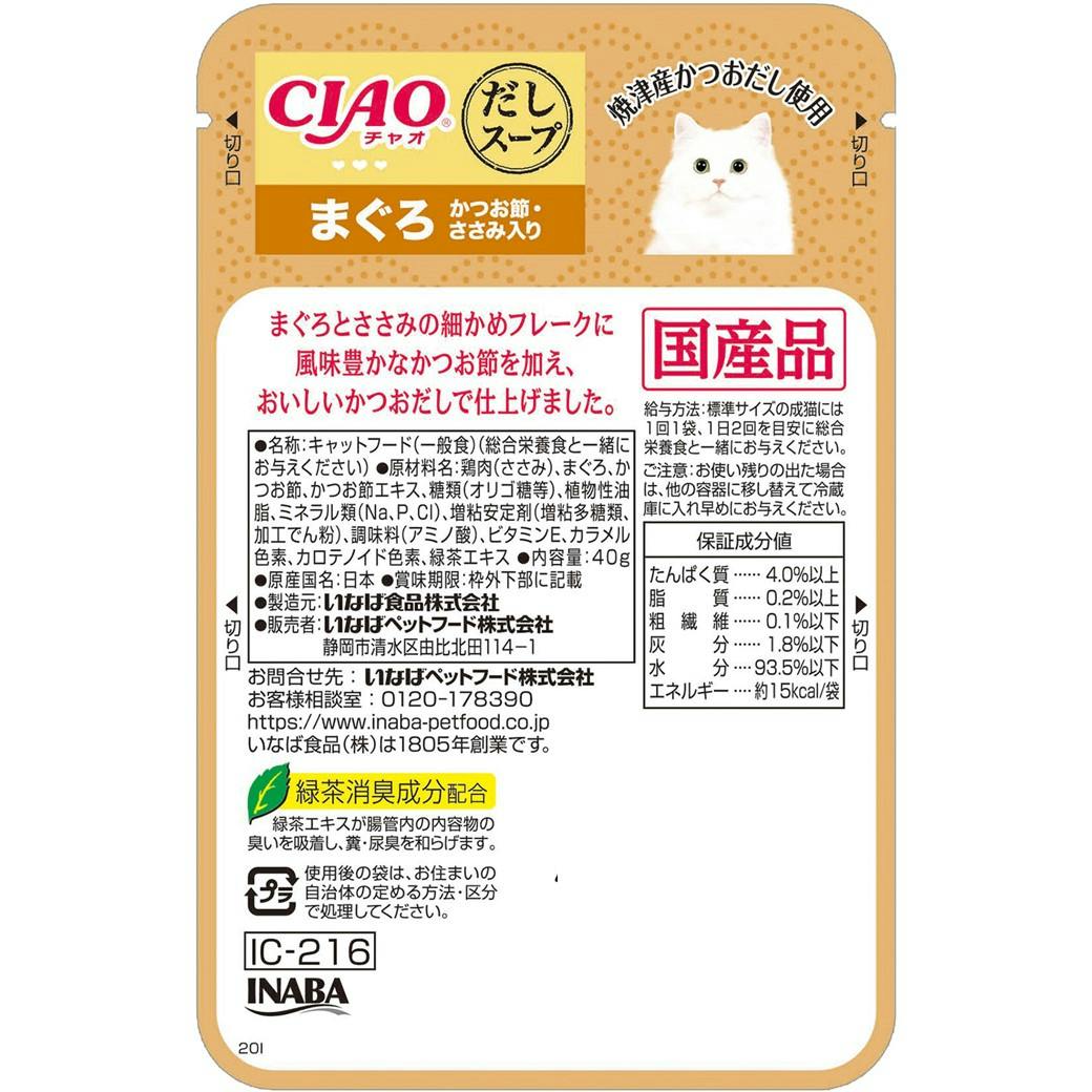 CIAO だしスープ 鮪かつお節笹身40g 猫フード ウェット 食いつき抜群 鮪かつお節笹身4 3751947001【別送品】
