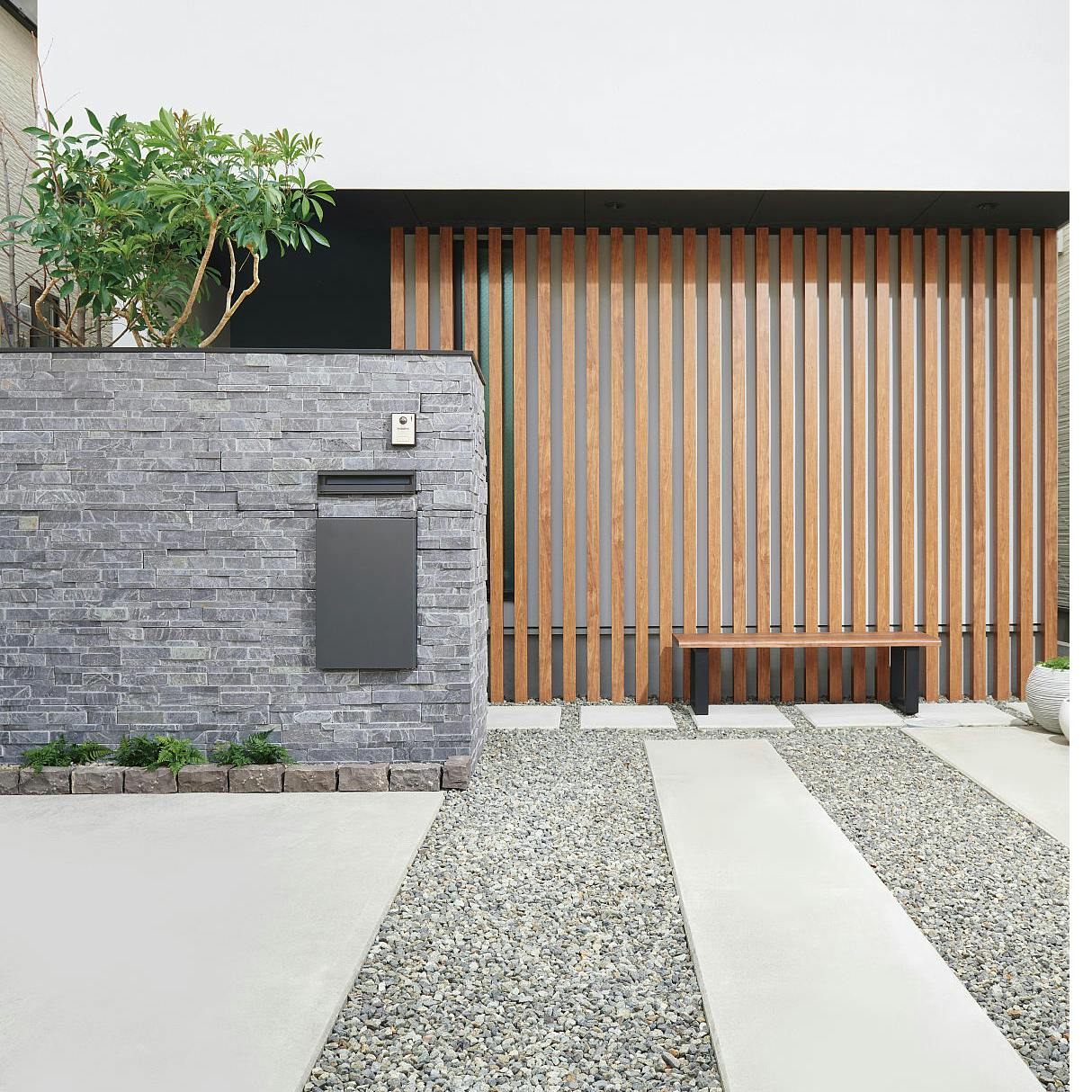 スッキリとスマートな佇まいの宅配ボックスです。さまざまなスタイルのエントランスにコーディネイトできます。