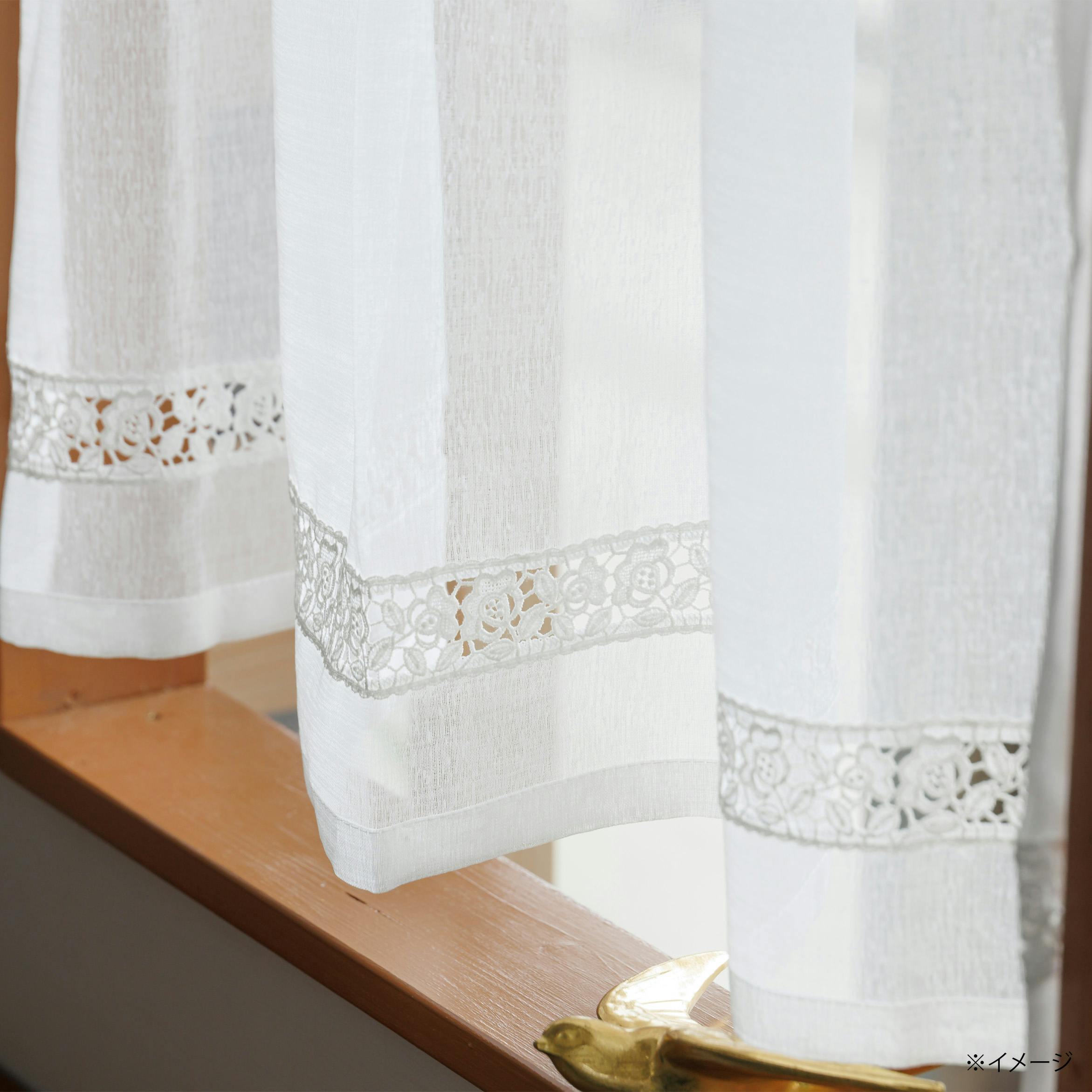 シンプルな麻調ポリエステル生地を使用した小窓用カーテン。シンプルなフラット仕上げのカーテンの裾付近にフリルを縫い付けることで可愛さも演出。シンプルな仕上りとなっていることでお部屋の雰囲気を維持しながら太陽光からお部屋を守る役割も担える優れもの