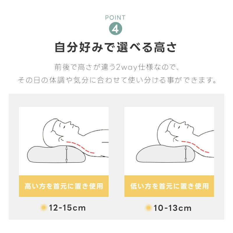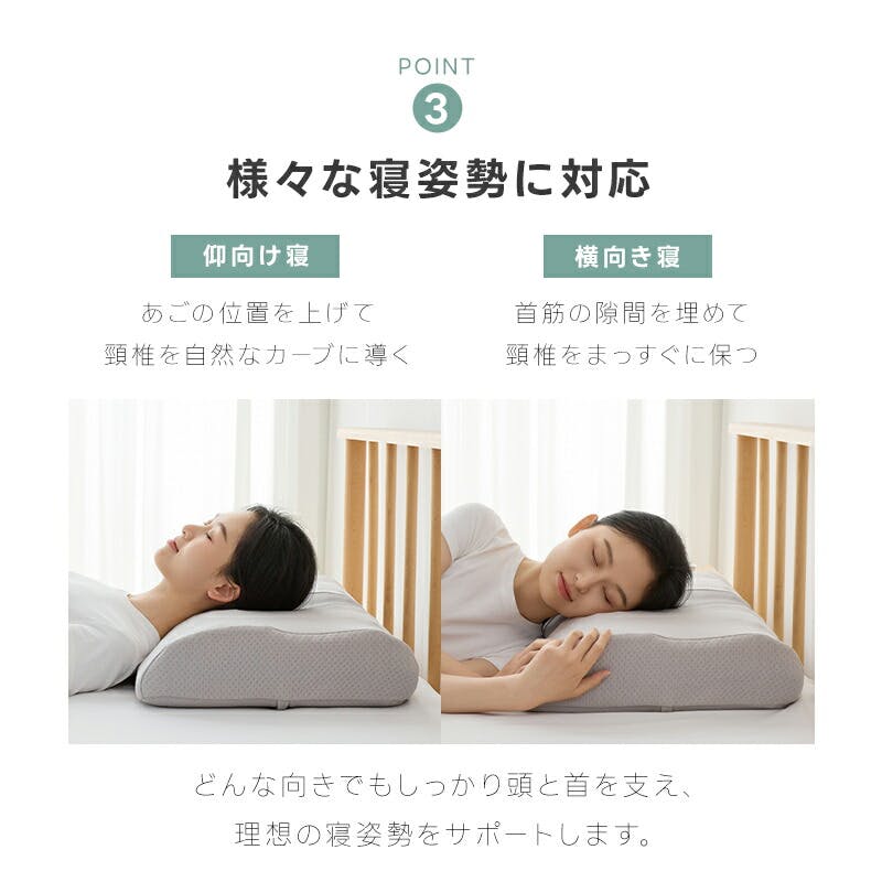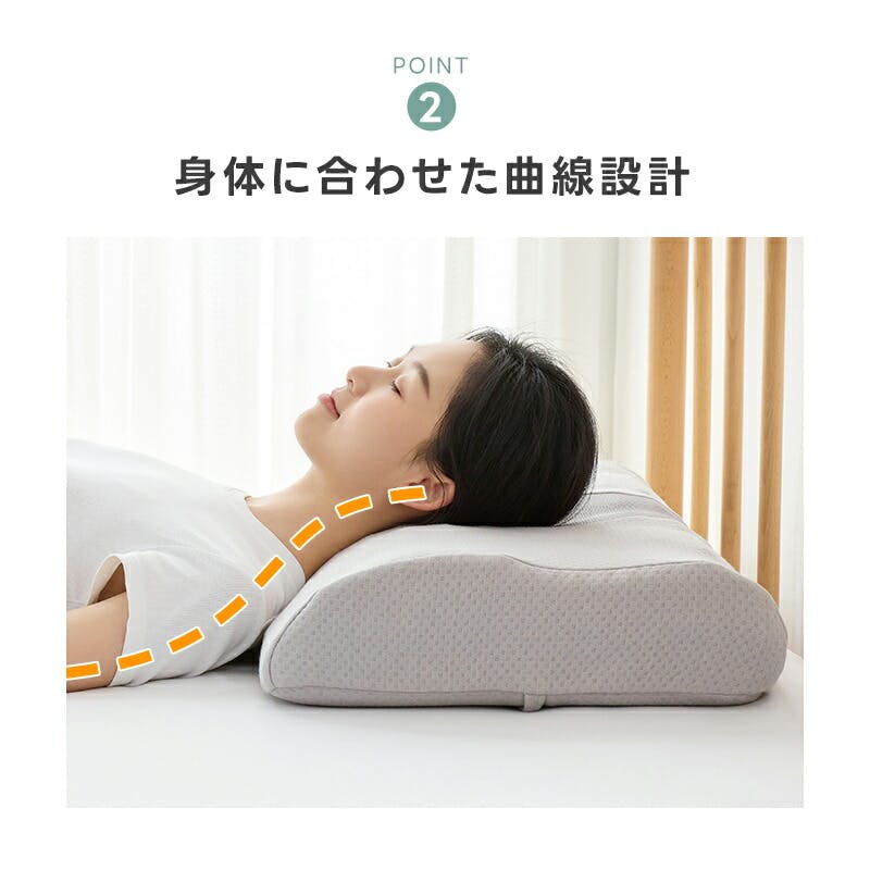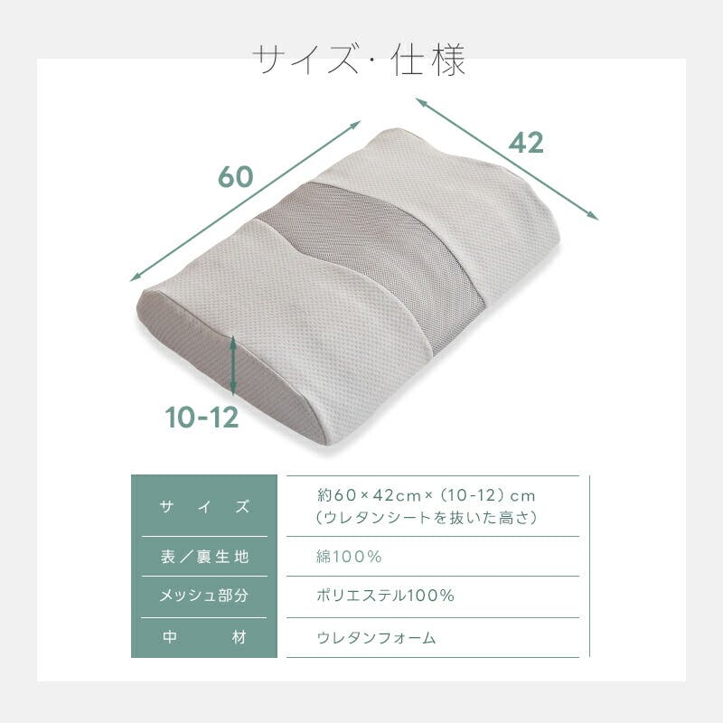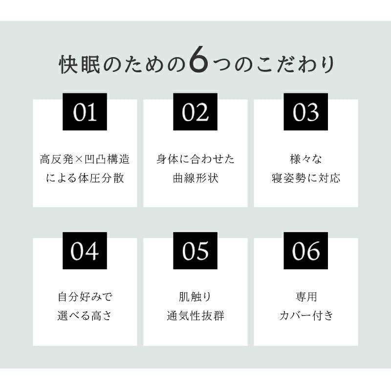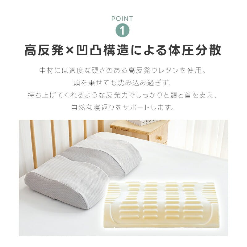 中材には適度な硬さのある高反発ウレタンを採用で自然な寝返りをサポート。ウレタン表面の凹凸加工で寝ている間に血流を妨げず首や肩回りの筋肉をリラックス。